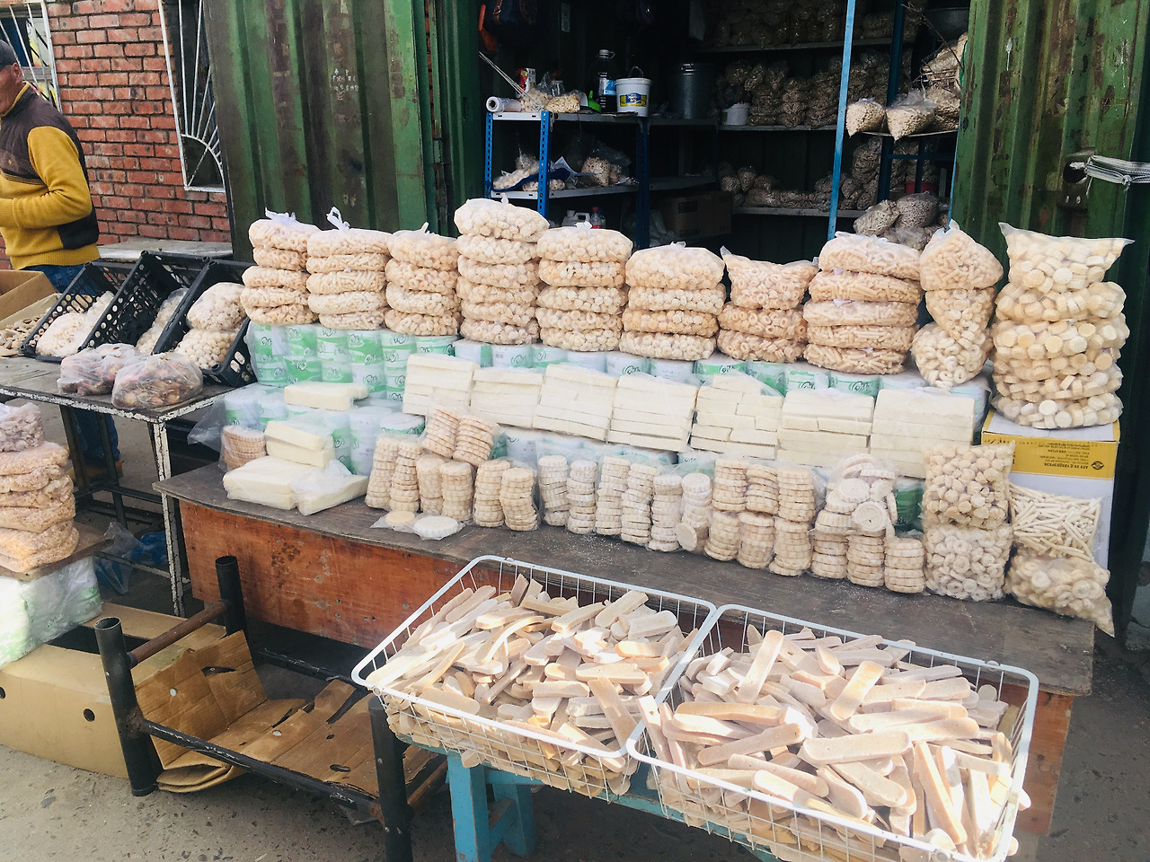 시장 한쪽의 아롤(몽골식 치즈) 파는 가게-