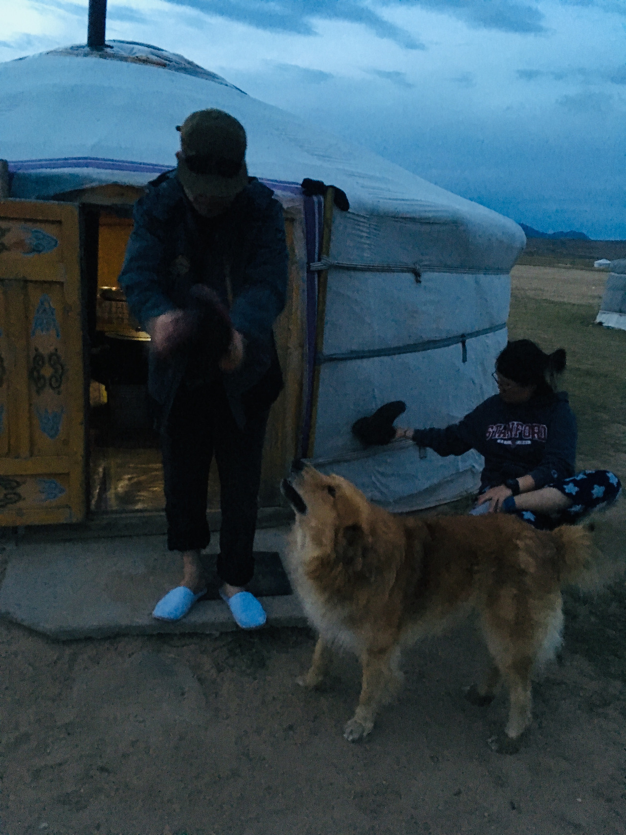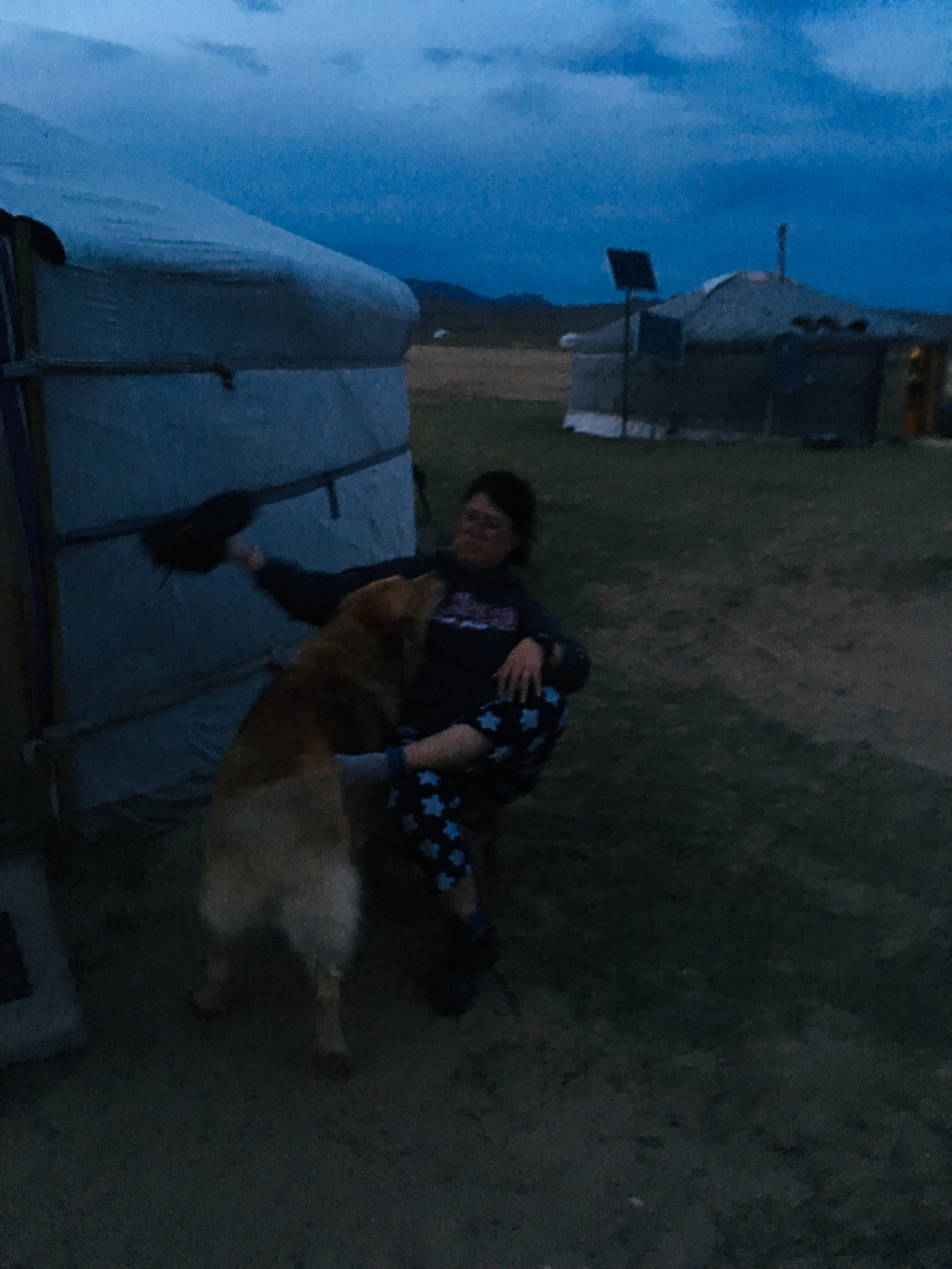 게르 밖에 앉아서 신발 모래를 터는데 저 강아지들이 엄청 달려든다 ㅋㅋㅋ귀엽기는 했지만... 그래도 좀 가줬으면 좋겠어..