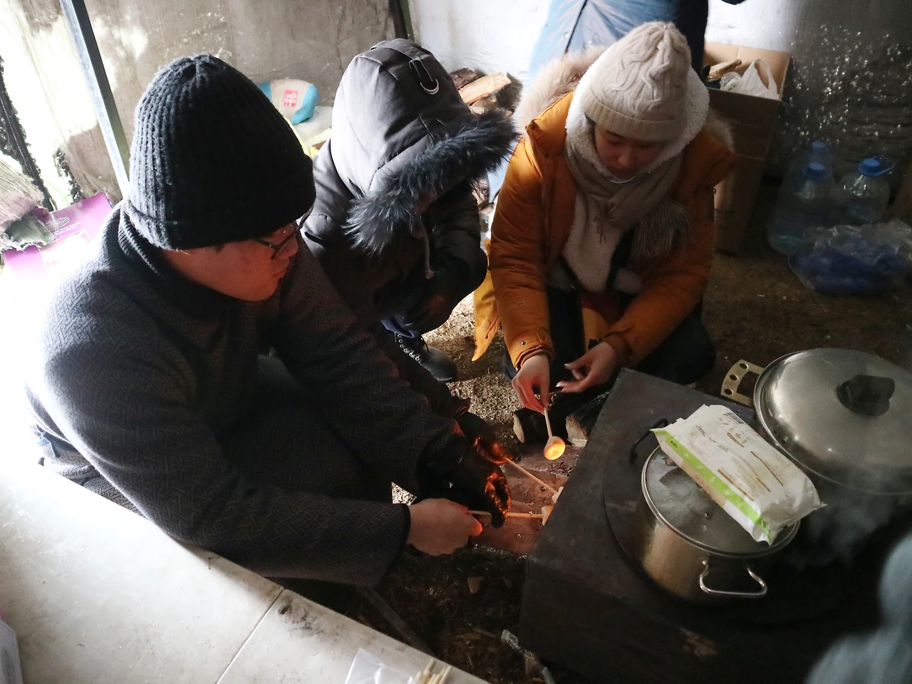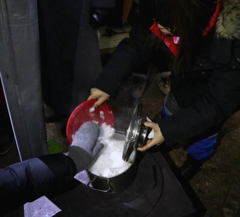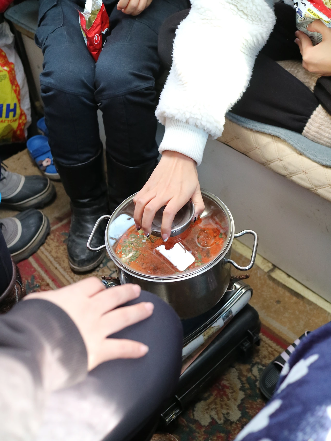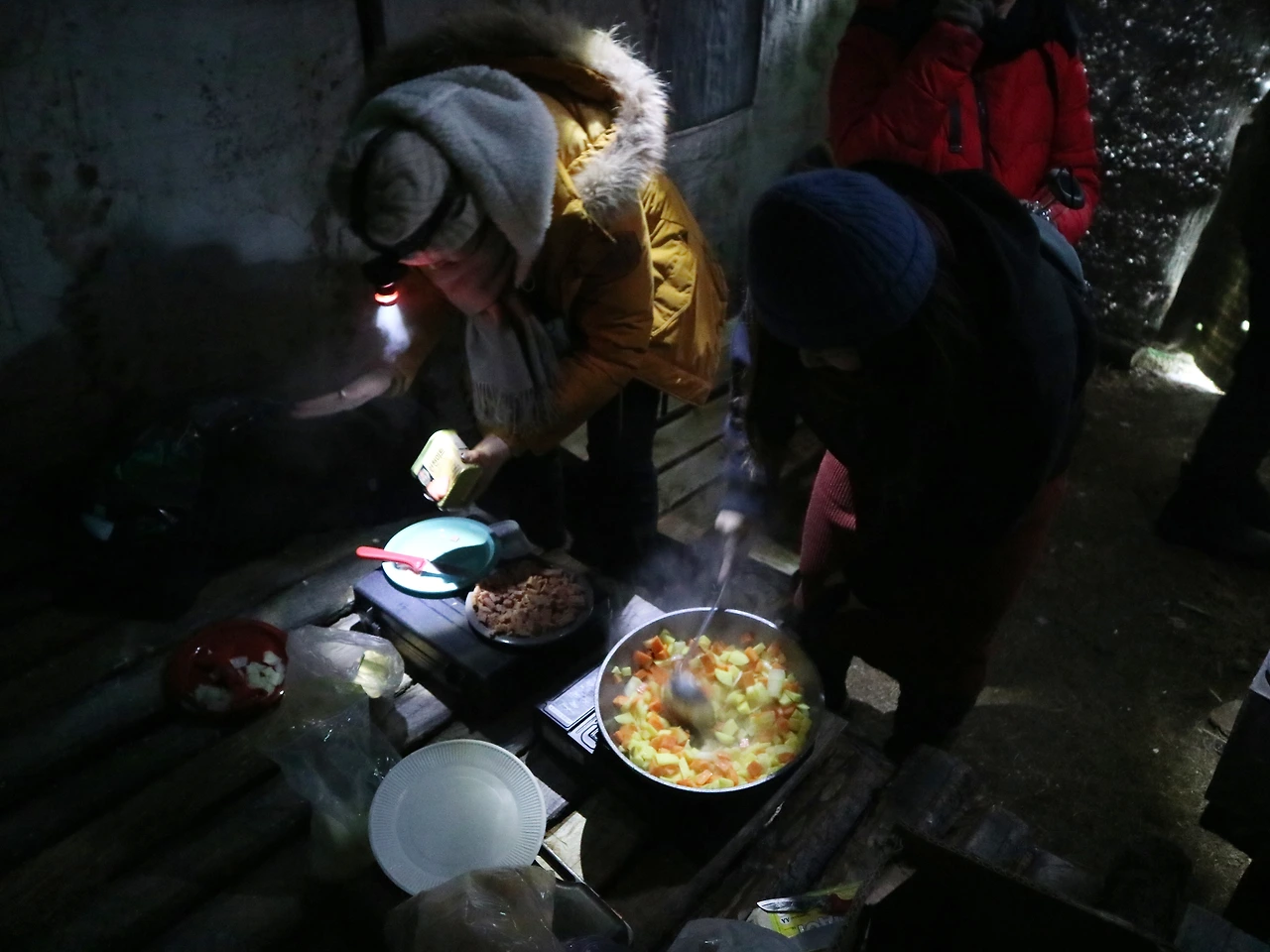 옹기종기 나란히 바닥에 침낭을 깔고 누웠다. 그리고 곧 화로의 불이 꺼지면서 바닥에서부터 냉기가 올라온다.