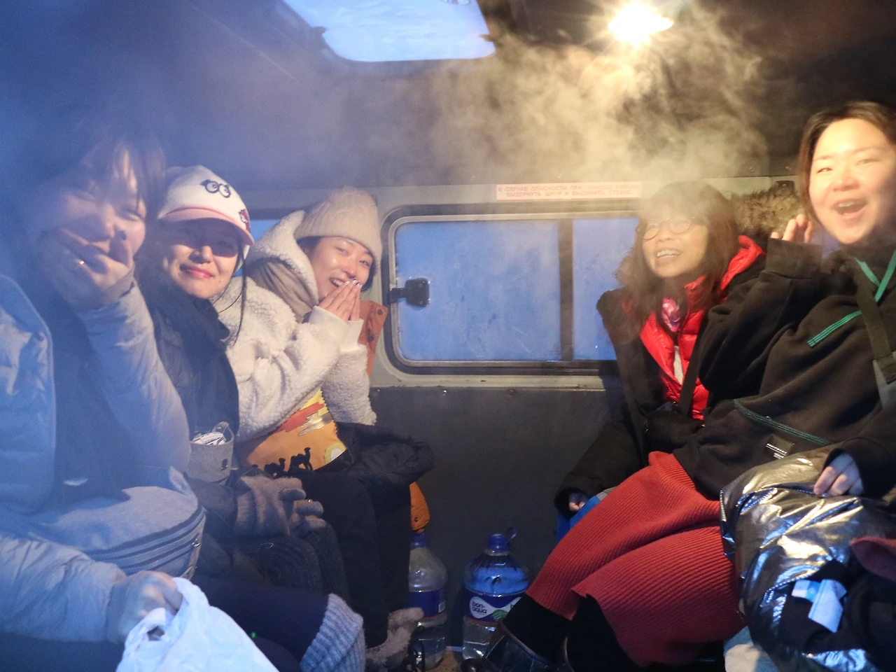 내려서 보고 싶었지만 너무 춥기도 했고 그럴 분위기도 아니어서 차 안에서 좌불안석.. 바깥 상황을 주시했다.