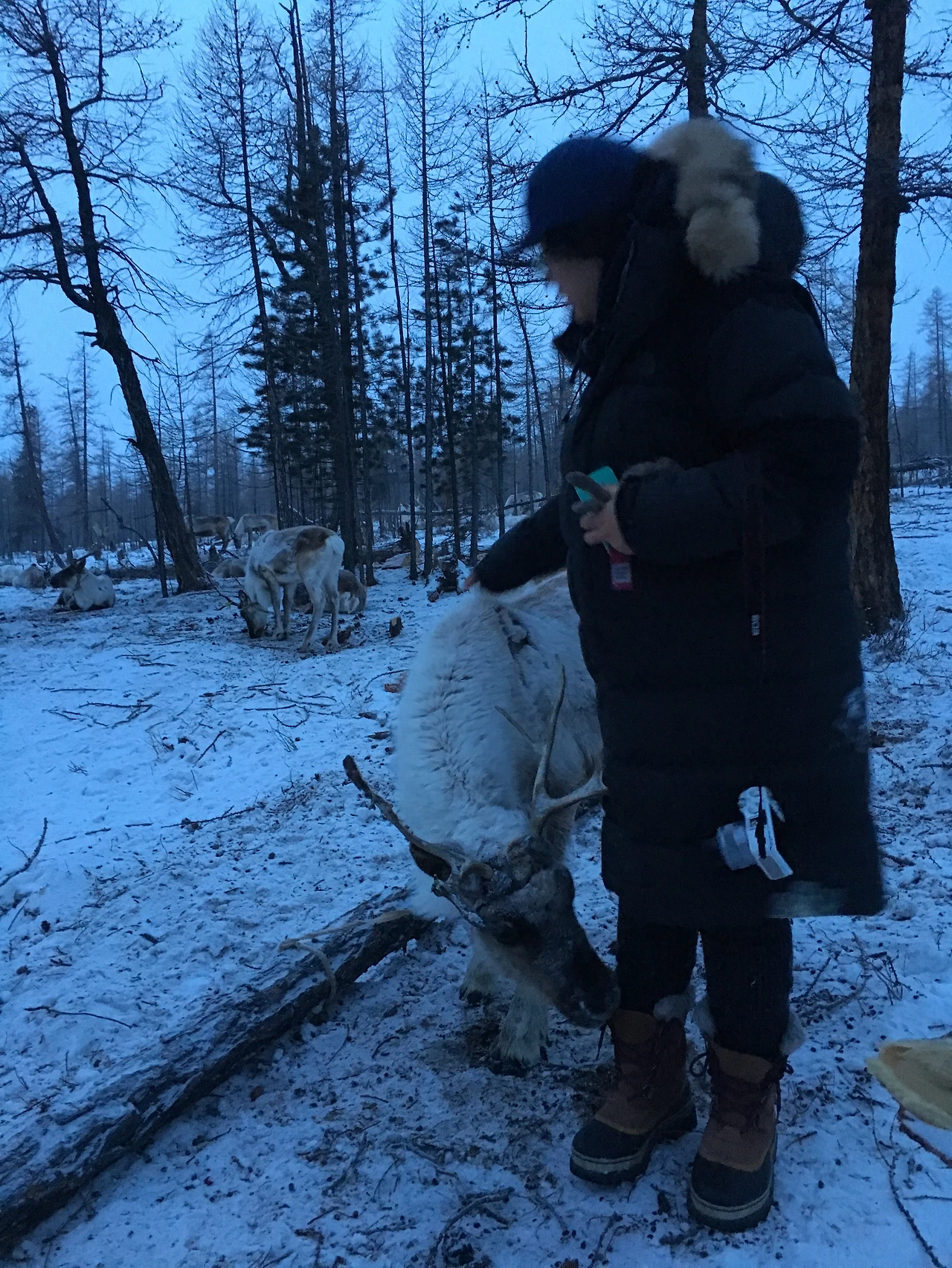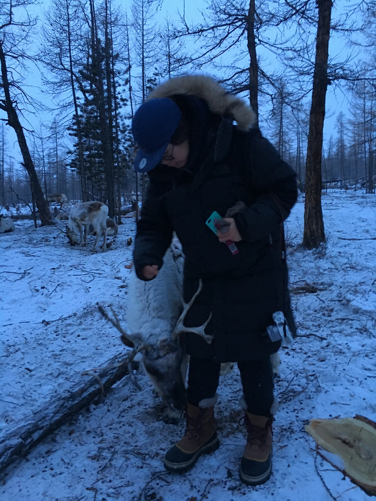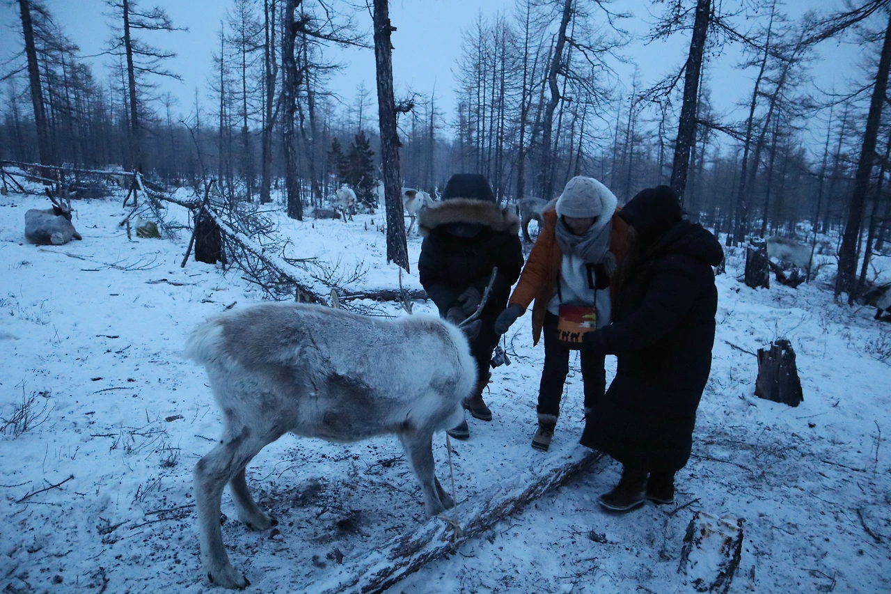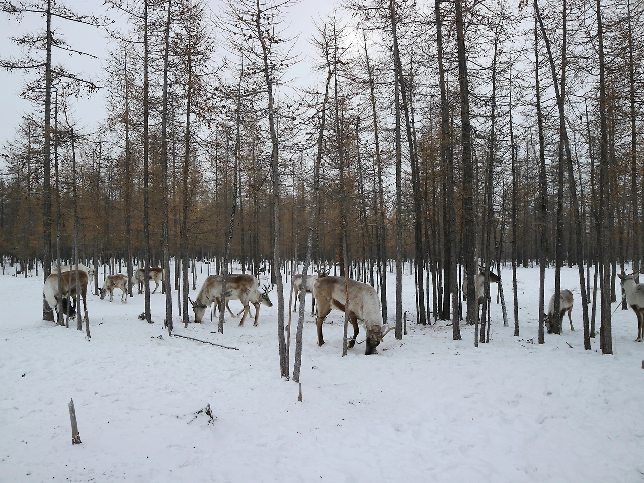 홉스골 하트갈에서 장하이로 넘어가는 길에도 차탕족이 순록을 묶어놓고 기념품을 파는 모습을 볼 수 있는데, 여름엔 더워서 순록들이 힘들어한다는 이야기를 들은 적이 있다.