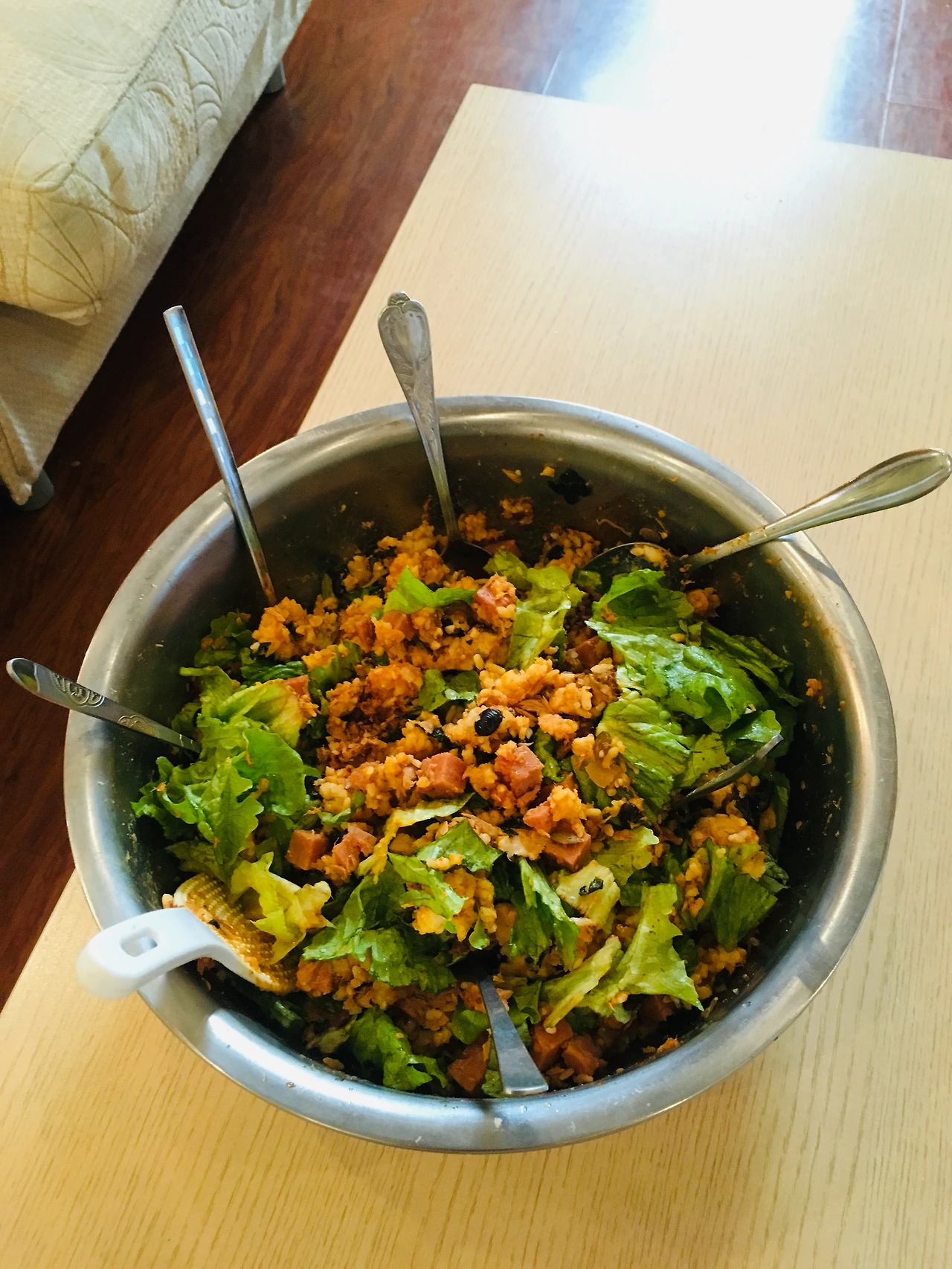 남은 재료를 싹다 넣고 고추장과 참기름을 양껏 둘렀다. 각자 수저 하나씩 들고 달려들어 슥슥 비비는데 보고 듣고 맛보고 씹는 맛이 일품이다! 하마터면 여기가 한국인 줄로 착각할 뻔 했다. ㅋㅋㅋㅋㅋ