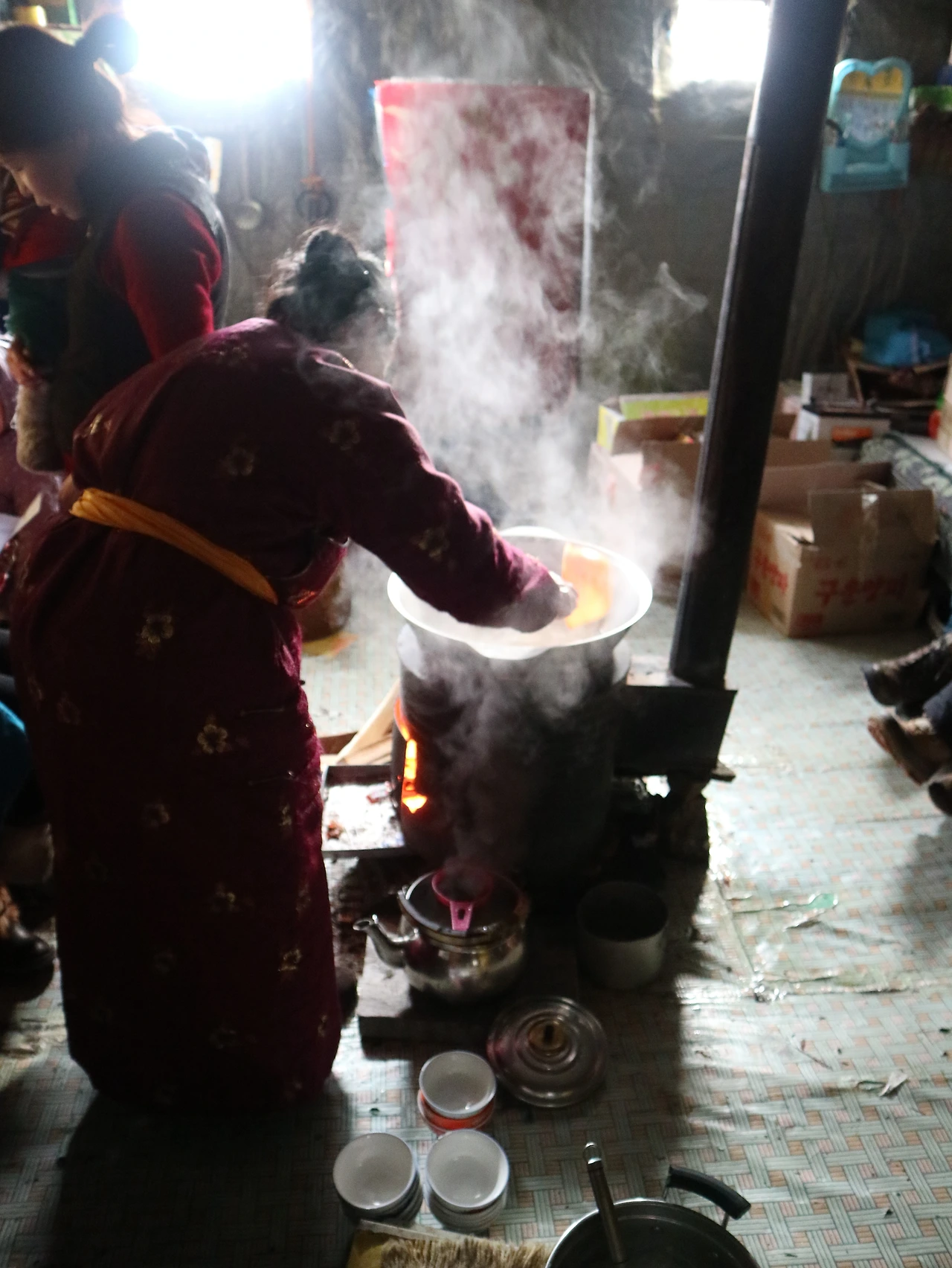 몽골 사람들의 소울푸드인 수테차를 끓이시는 강바 이장님 아내분-