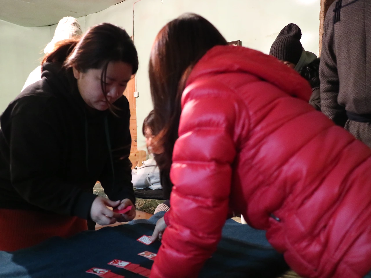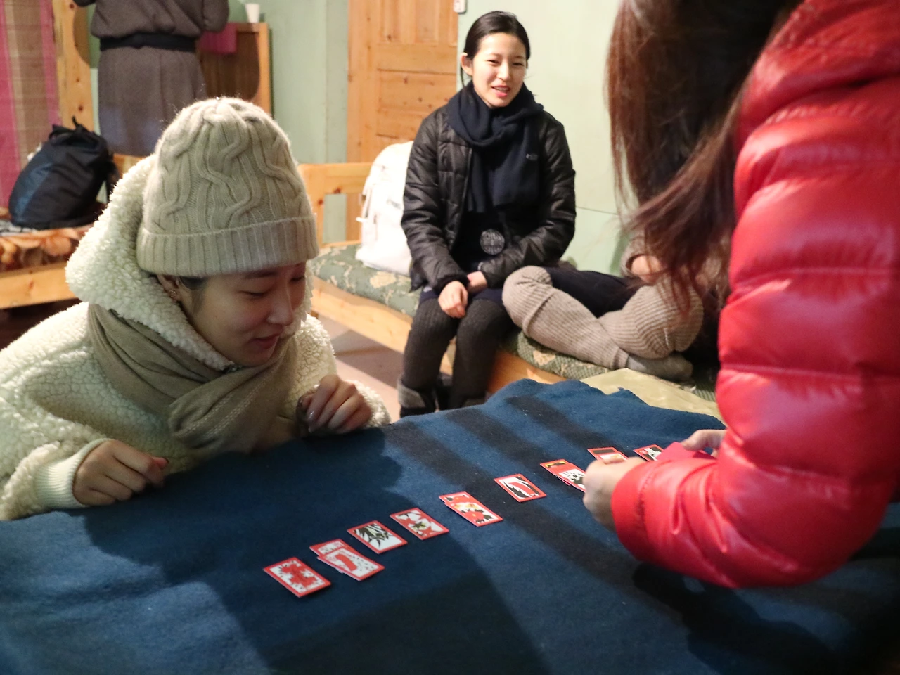 바깥 날씨가 너무 추워서 밤새 얼어버린 푸르공의 엔진을 빌게 아저씨가 녹이고 있을 동안 정리 요정이 화투로 오늘의 운세를 봐주셨다. 뭔가 착착착 패를 고르는 손놀림에 진짜 전문가 같은 느낌이 물씬 난다-