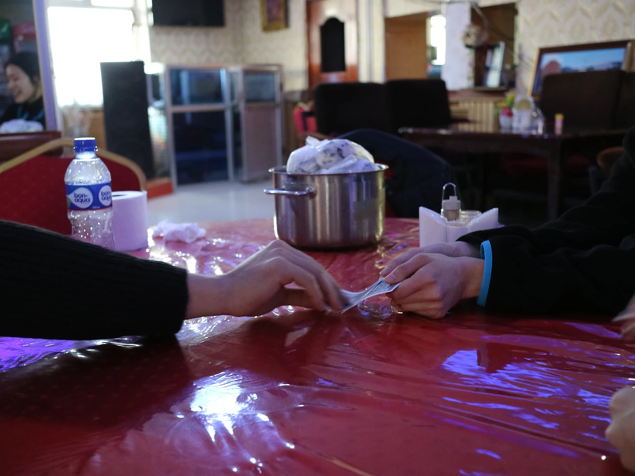 차탕족 마을에서 후다닥 나와 차강노르솜의 게스트하우스에 들러서 아침으로 보쯔를 먹었다.