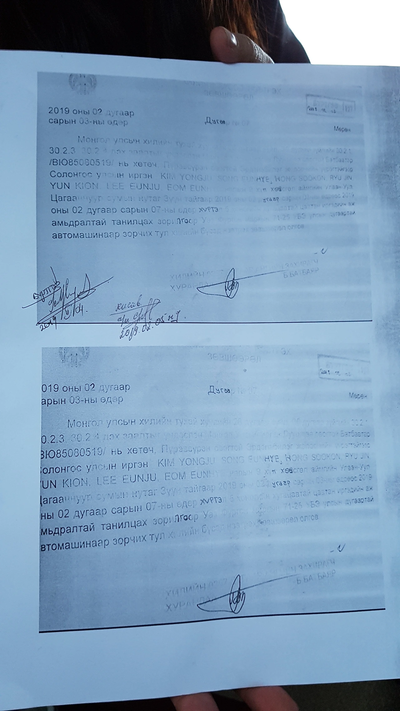 (+우리가 가는 곳이 러시아 국경과 매우 가까운 곳이라 국경지역 출입 허가서를 받아야 했다. 우리는 여행 전 미리 여권과 비자, 거주증을 스캔해서 가이드에게 보냈고, 이것을 가지고 따기가 직접 가서 출입 허가서를 받는 듯했다. 출입 허가서는 울란바타르에서도 받을 수 있고, 무릉에서 발급받을 수도 있다고 한다)