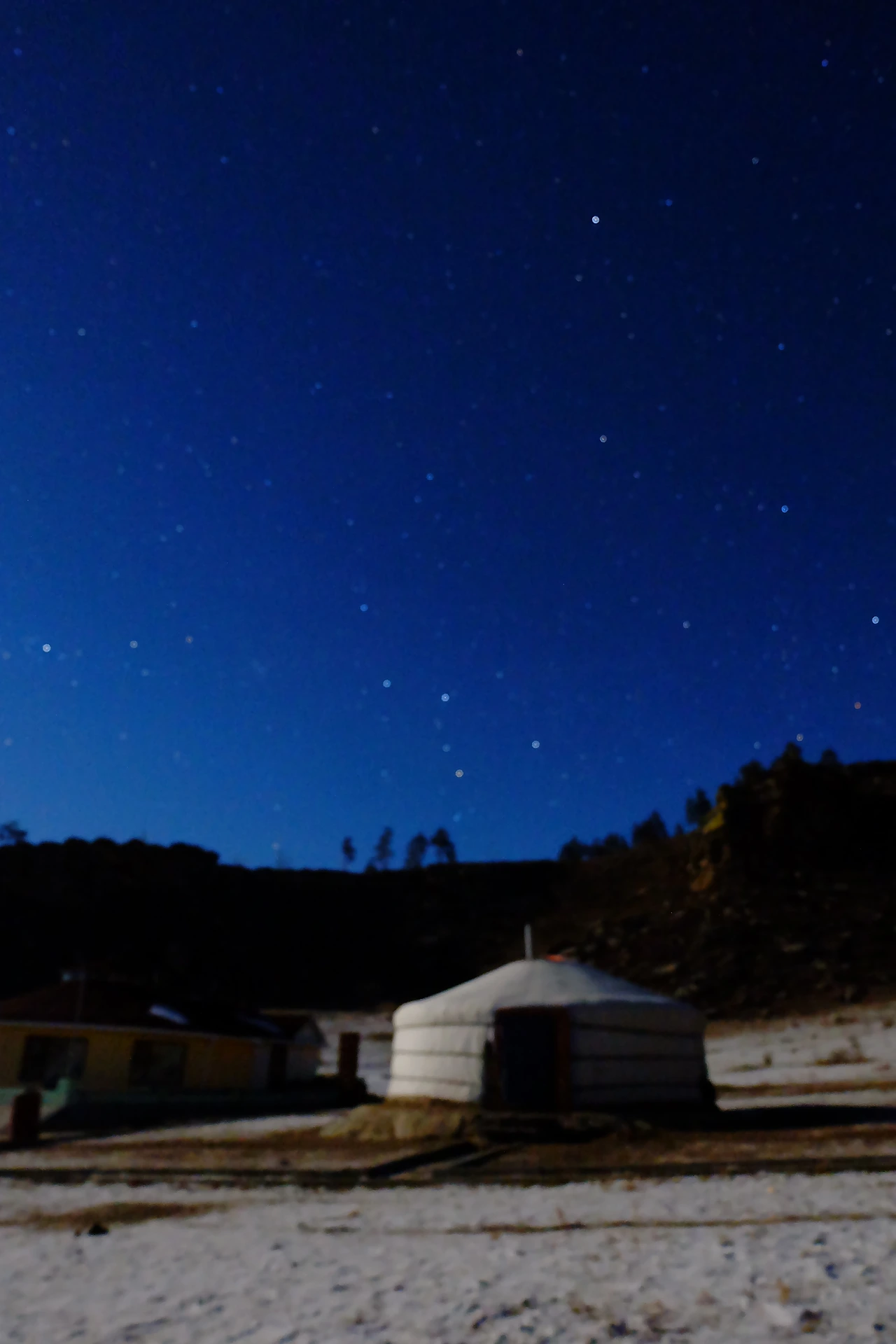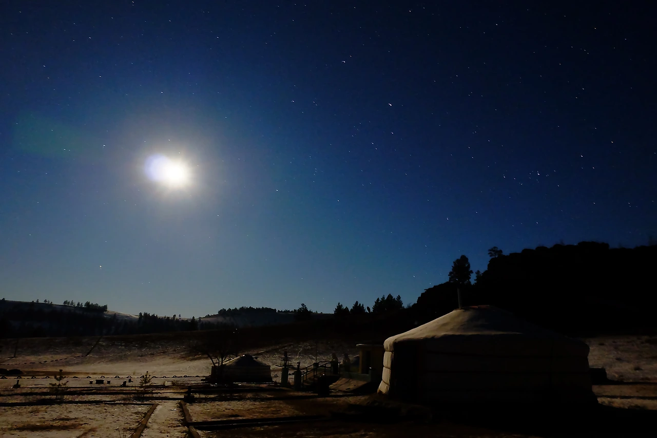 몽골에 와서 왜 달을 밝다고 하는지 이해했다. 달빛으로 주위에 있는 별은 하나도 안 보이고 하얀 눈들이 달빛을 반사해 사방이 환했다. 별도 좋지만 이렇게 밝은 달을 볼 수 있는 것도 참 좋더라-