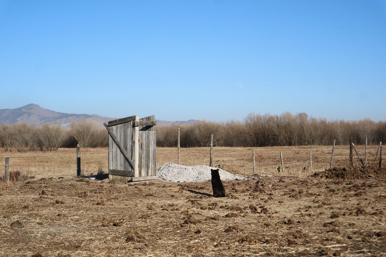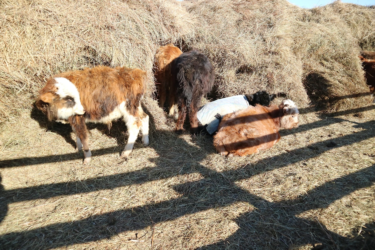 집을 지키는 사자개 같이 생겼던 몽골 강아지와 마른 짚에 얼굴을 파묻고 있던 송아지들-