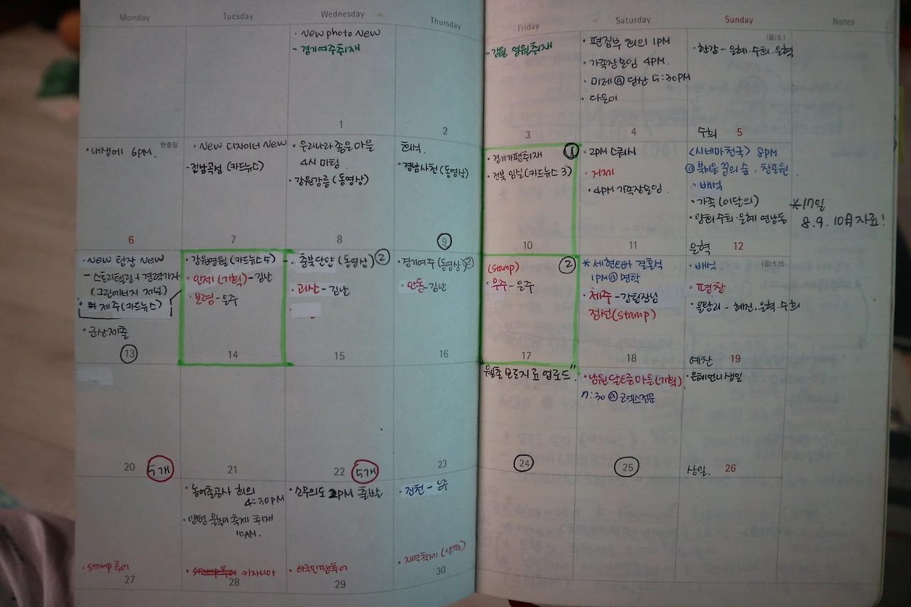 -> 메모지가 많은 다이어리를 사다 보니 데일리 스케줄로 남은 칸을 그냥 둘 수 없음 (이것도 성향)