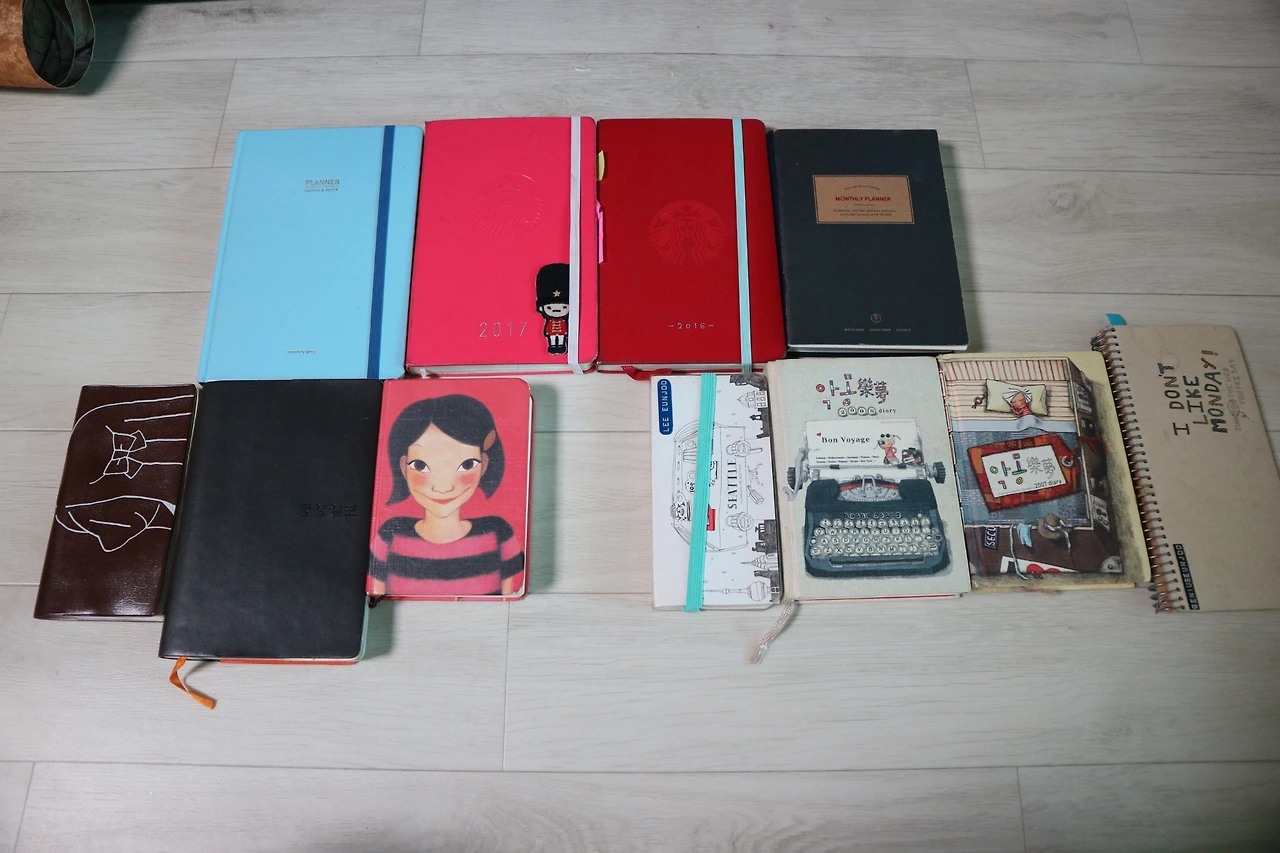 고3, 2006년부터 2018년까지 써온 다이어리들.