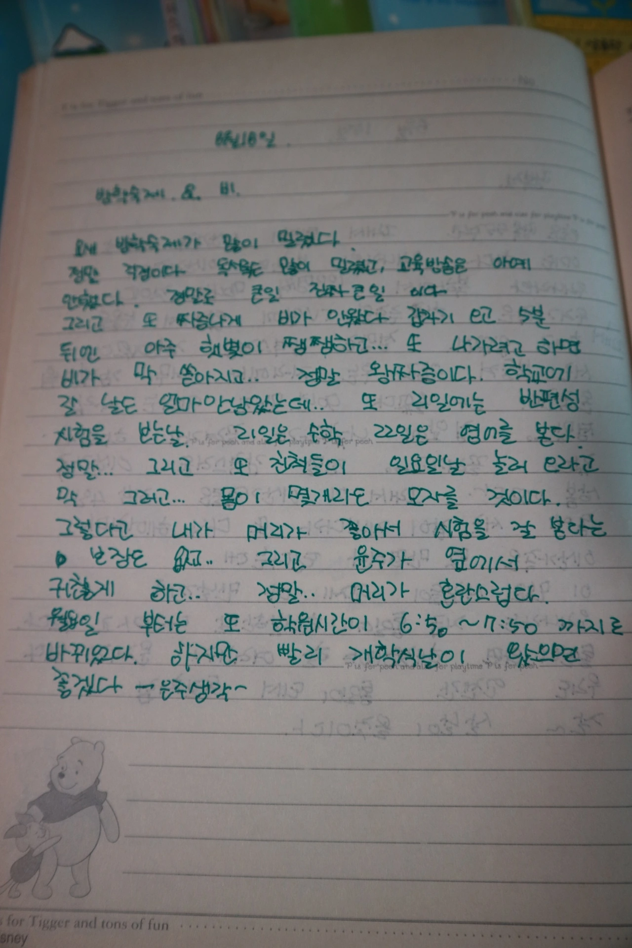 아, 내가 초딩때 글씨를 저렇게 썼구나- 초딩들 글씨는 다 비슷비슷한가 보다 ㅋㅋㅋ