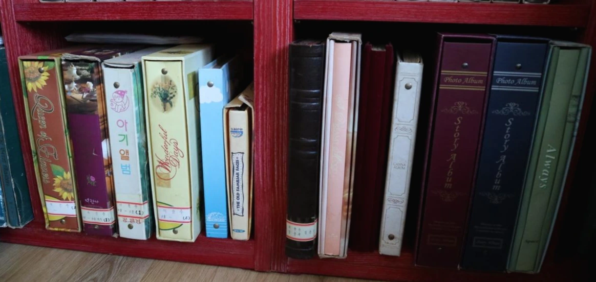 그동안 가족여행 및 엄마 아빠의 여행 등등을 인화해 놓은 사진을 사진첩에 잘 정리해서 꽂아두라는 엄마의 미션이 있었다. 수백 장의 사진이 제 자리 찾기를 기다리고 있었다.