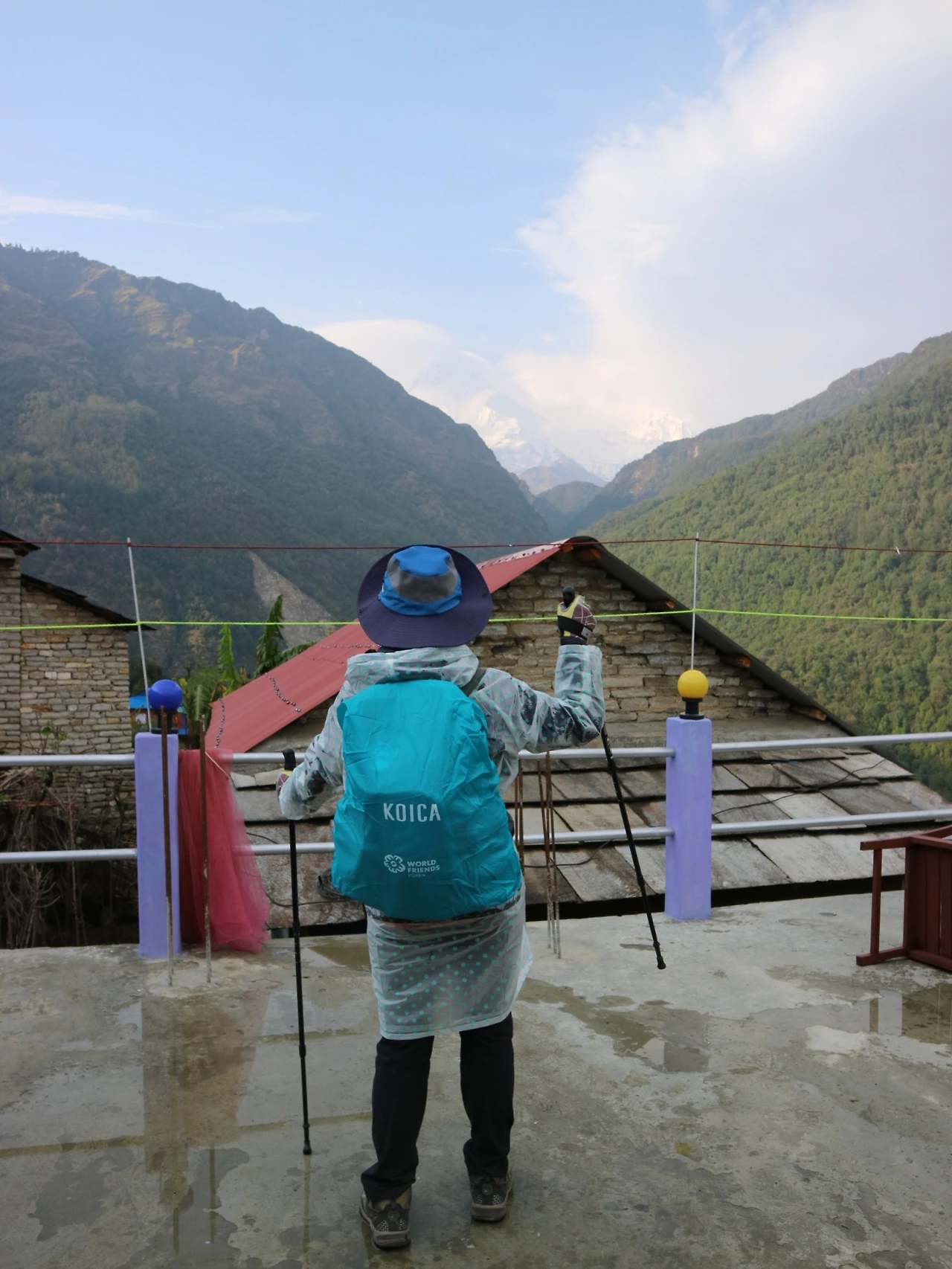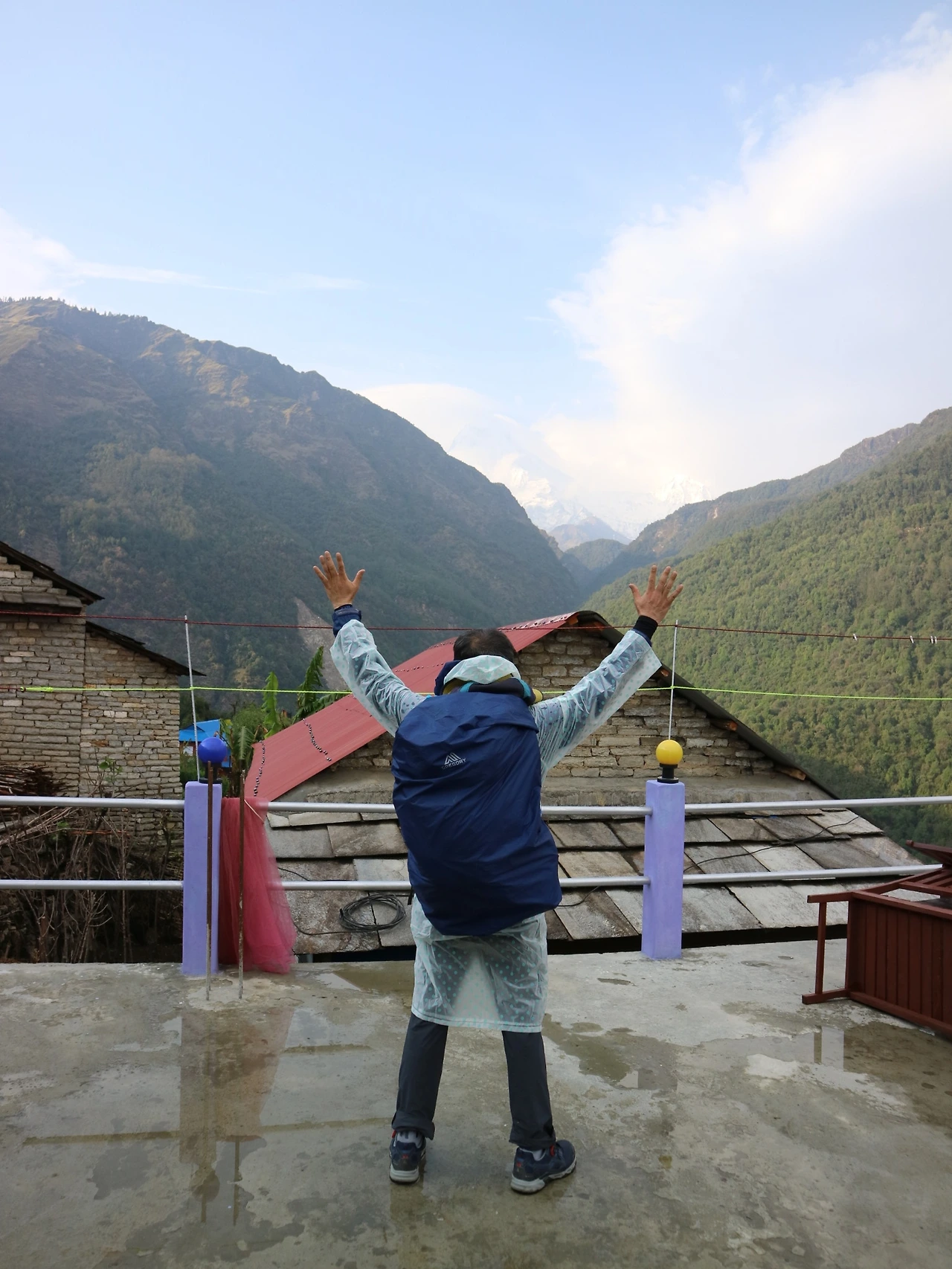 안나푸르나는 4개의 봉으로 이루어져 있는데, 그중에 우리가 본 안나푸르나 사우스(Annapruna south, 7219m)는 8천 미터가 되지 않는 산이었다. 처음에 저 멀리 눈 덮인 산을 발견하고서 한참 신기해하는데 네팔리들은 저건 높은 것도 아니라며.. 놀라는 우리를 보고 재미있어했다ㅋㅋㅋ