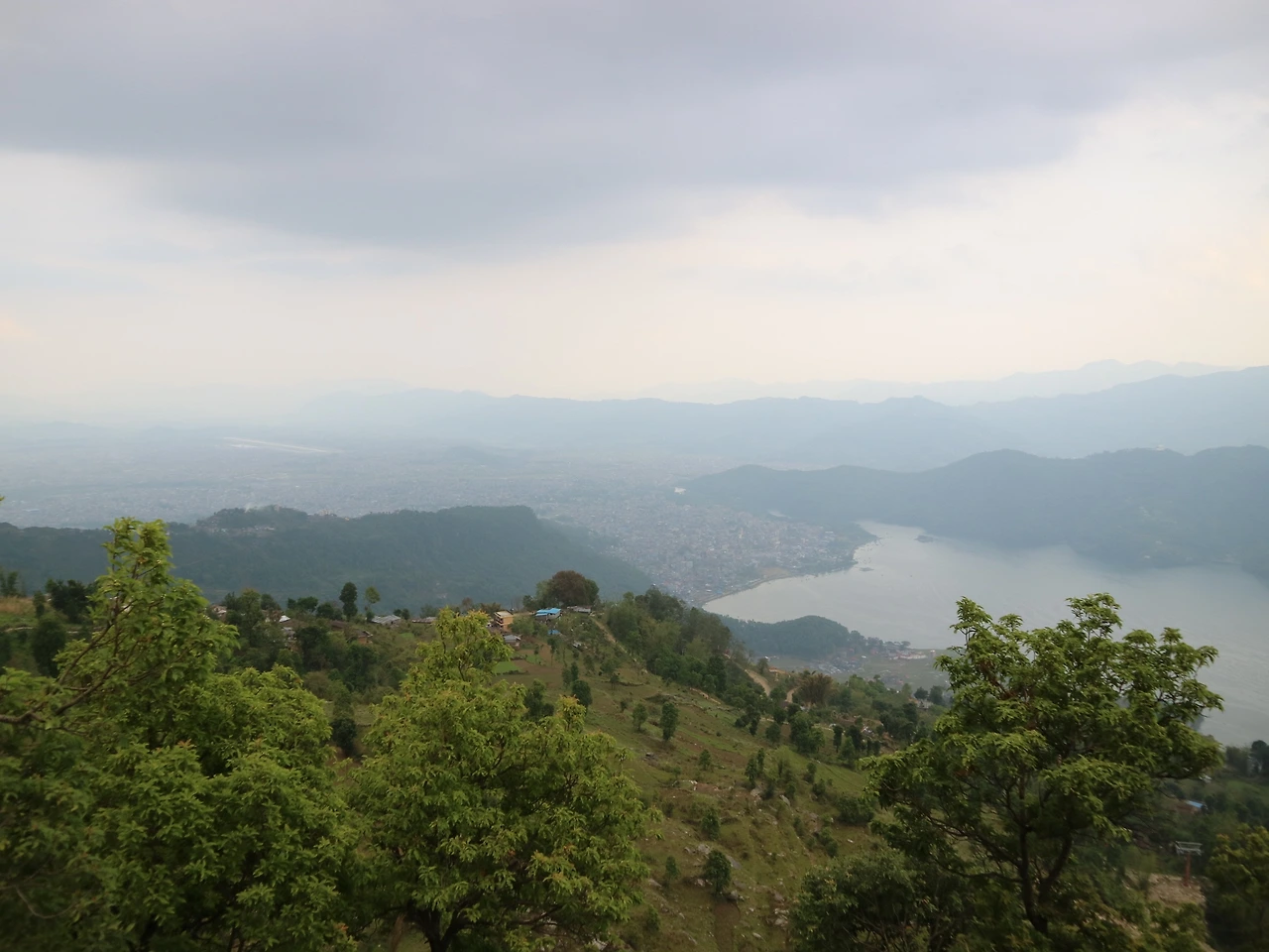 바로 차를 갈아타고서 포카라로 향했다. 포카라로 가는 길에 우리는 시내를 한눈에 내려다볼 수 있는 언덕에 잠시 들러 포카라 시내를 둘러봤다. 폐와 호수는 생각보다 컸고, 포카라 시내도 넓게 펼쳐져 있었다.