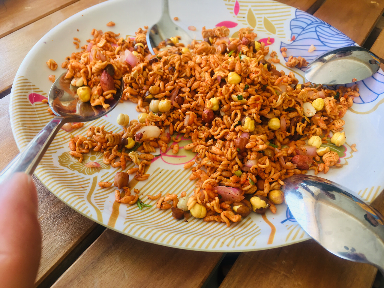 촛밧이라는 이름으로 불리는 이 간식은 생라면에 레몬, 양파, 병아리콩, 견과류, 등을 넣고 섞은 것이었다.