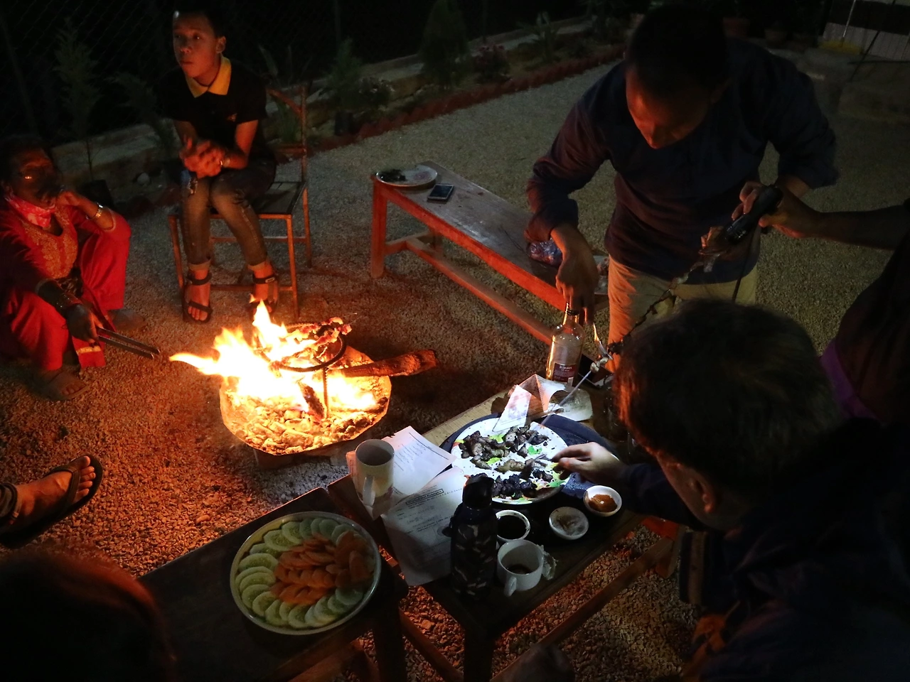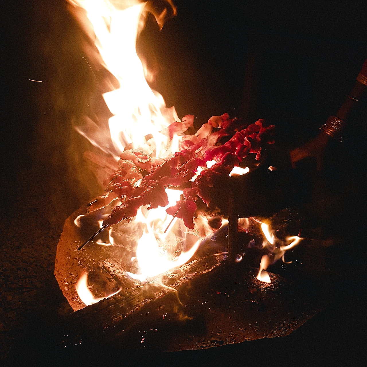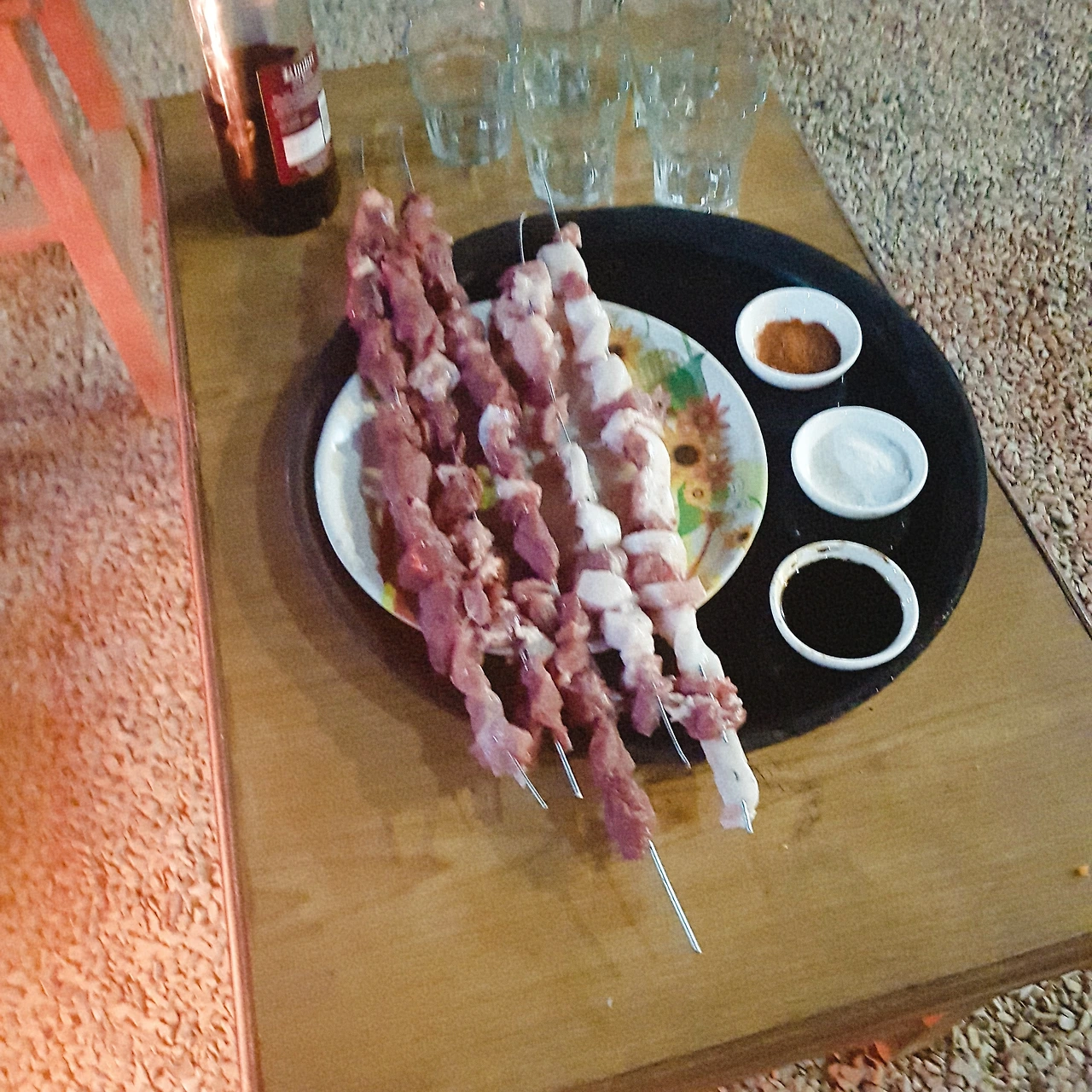 달밧과 라면으로 배를 채우고 본격적인 바베큐 타임! 시장에서 사 온 고기를 꼬챙이에 꽂아서 불에 직화로 구웠다. 그리고 온갖 조미료를 뿌려 먹으면..! 짱맛이다ㅋㅋ ㅋㅋㅋㅋㅋ