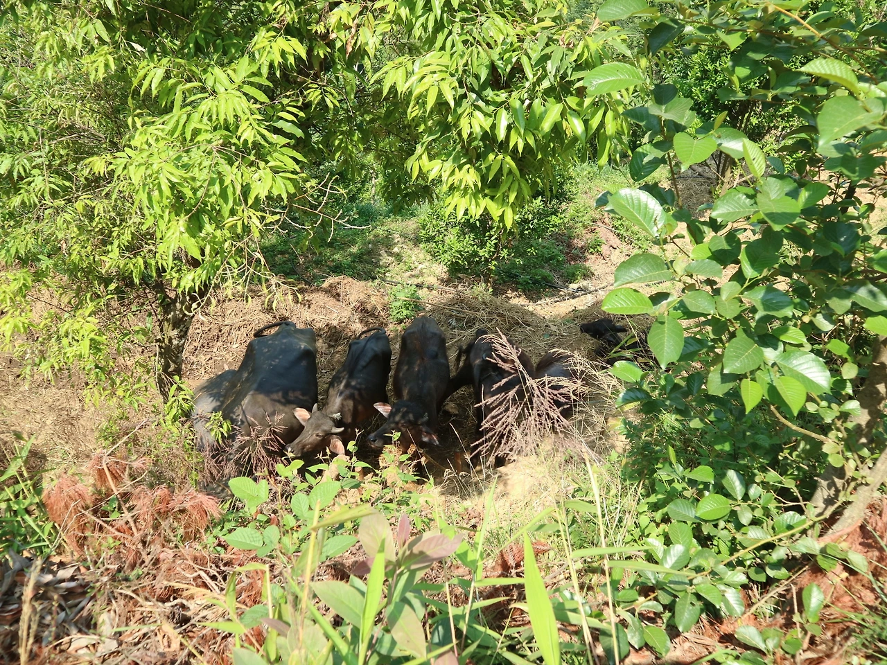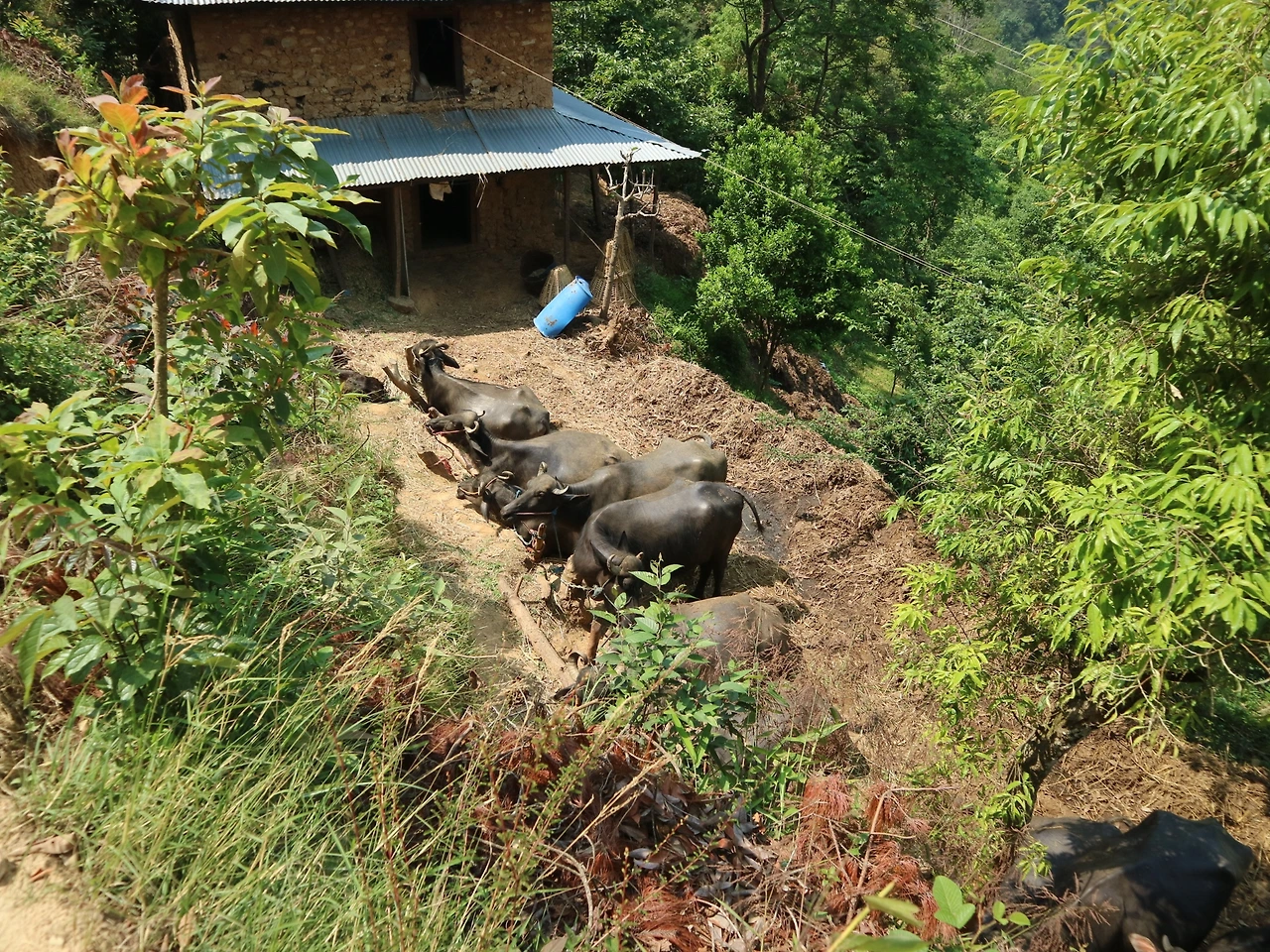 학교로 가는 길- 산 비탈길 옆에 위치한 집에 버팔로 가족이 살고 있었다. 오늘 아침 우리에게 우유를 제공해 준 애들이라고 한다 ㅋㅋㅋㅋ