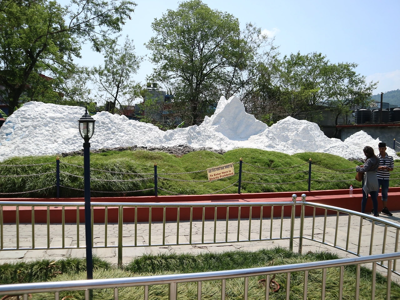 안나푸르나 산맥을 본떠 만든 조형물과 철장 사이로 폭포를 바라보는 엄마 ㅋㅋㅋㅋ