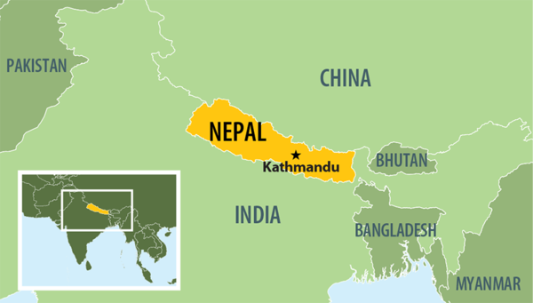 네팔은 한반도의 약 2/3 크기로, 중국과 인도 사이에 위치해있다.