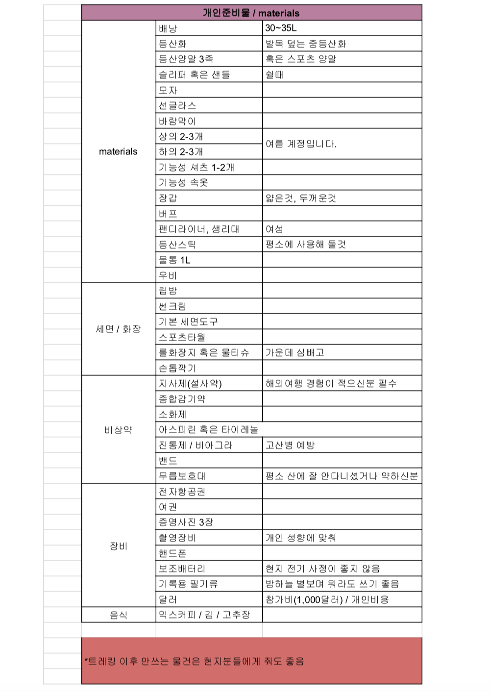 히말라야 트레킹에 대한 정보는 쉽게 찾을 수 있었고, 부족한 것은 현지에서 충분히 구할 수 있기 때문에 짐 싸기는 크게 어렵지 않았다. 그래서 내가 특별히 챙겨간 것 위주로 써본다-