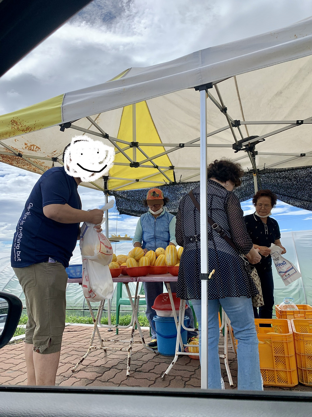 마침 우리 차 안에 참외를 좋아하는 친구가 있어 아침에 비닐하우스에서 수확했다는 참외를 한 봉지 구매-
