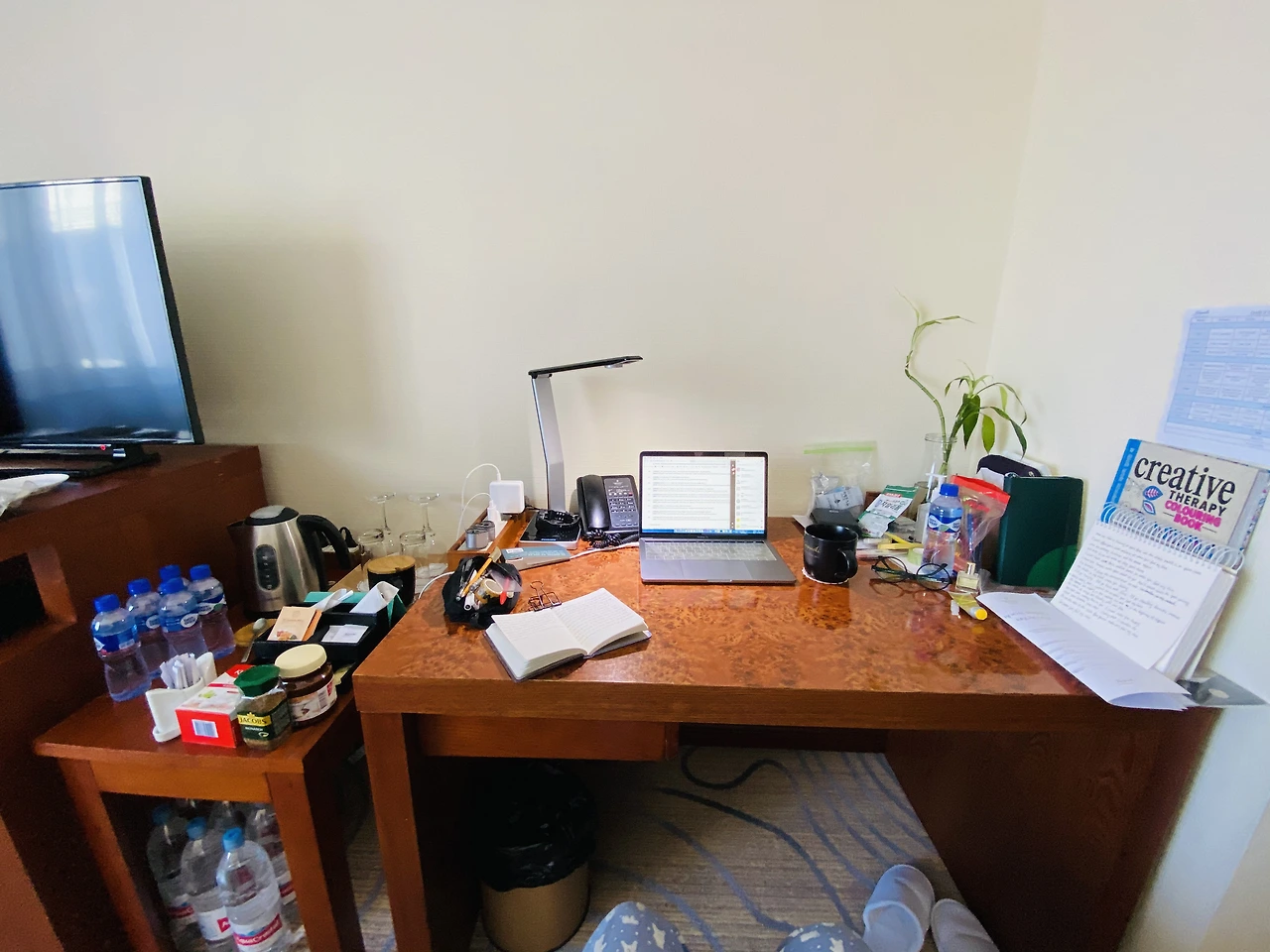 방이 아주 넓지는 않았지만, 2인 or more 함께 지내야 하는 사람들에 비하면 혼자서 이 정도는 양호하지! (그리고 언제 또 삼시세끼 룸서비스 받으며 호텔 생활을 해보겠나!!)