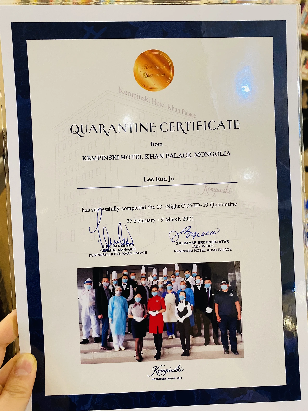 몽골 정부 방침에 따라 10일 시설 격리(호텔)+4일 자가격리(숙소)가 시작됐다.