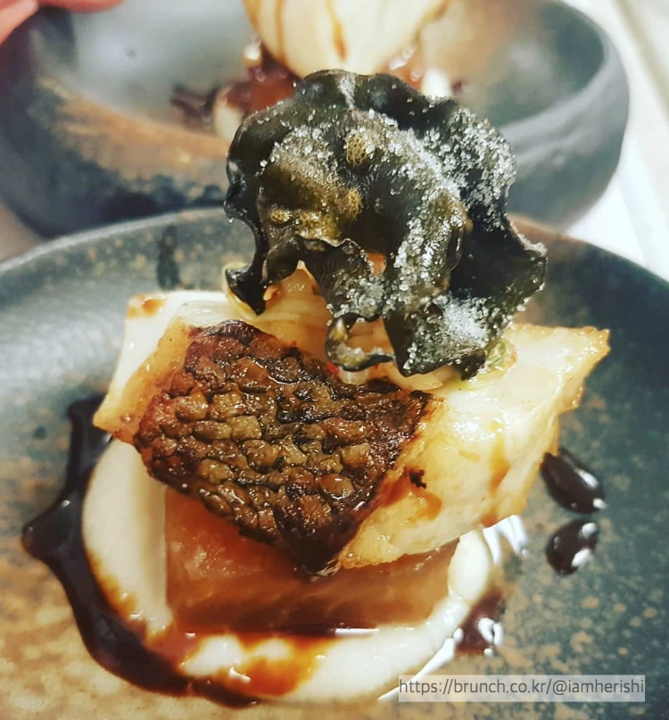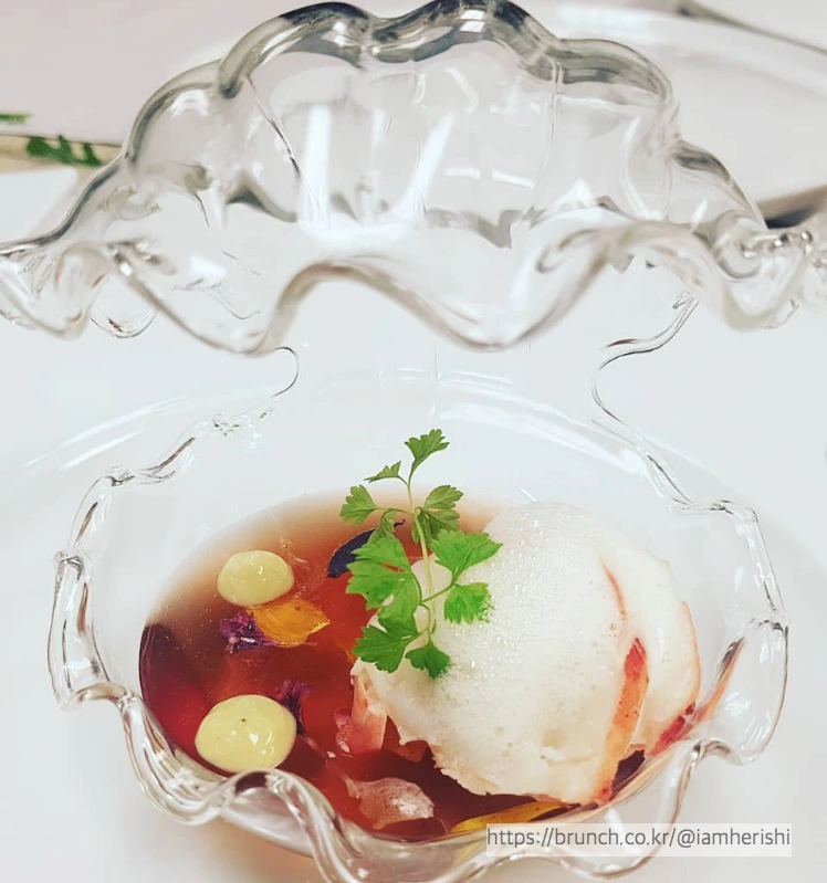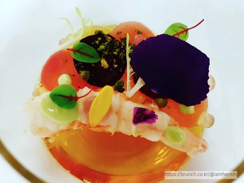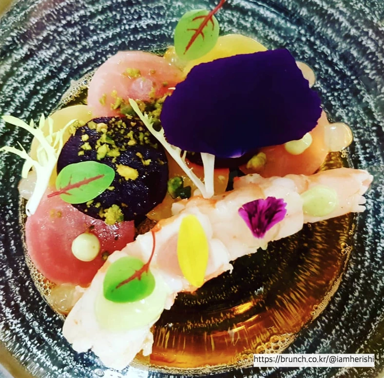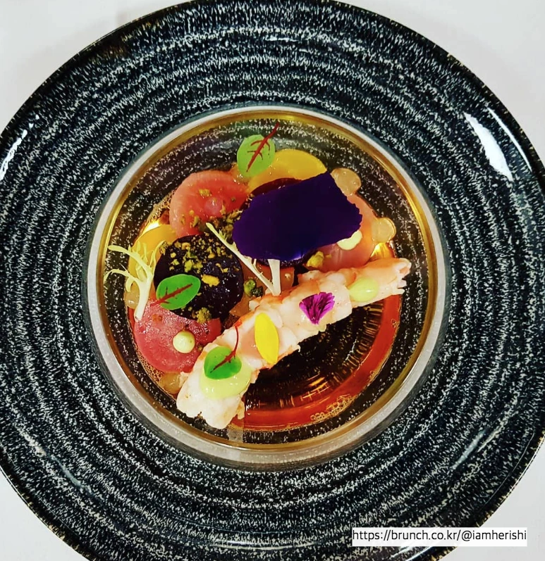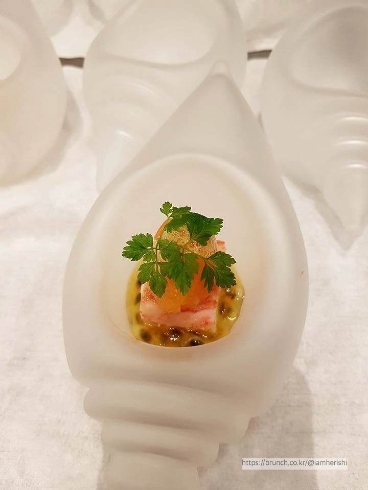 이런 생각을 늘 가지고 있던 나에게 어느 날 셰프가 VIP 손님들을 위한 코스요리 중 몇 가지 코스를 직접 창작해 보라는 숙제를 주었다. 나는 밤새 요리를 구상하고 계획을 그림으로도 표현해 설명했다. 여러 가지 창작요리들 중 한식을 소개할 수 있는 메뉴들도 넣었는데, 이렇게 셰프 레이와 함께 준비해 선보인 셰프의 테이블(Chef’s Table) 코스요리에서 여러 국적의 사람들에게 매우 뜨거운 반응을 얻게 되었다. 그 일을 계기로 나는 더욱더 용기를 얻어 고유한 한식 또는 서양요리와 한식을 접목한 요리들을 개발해 나갔다.