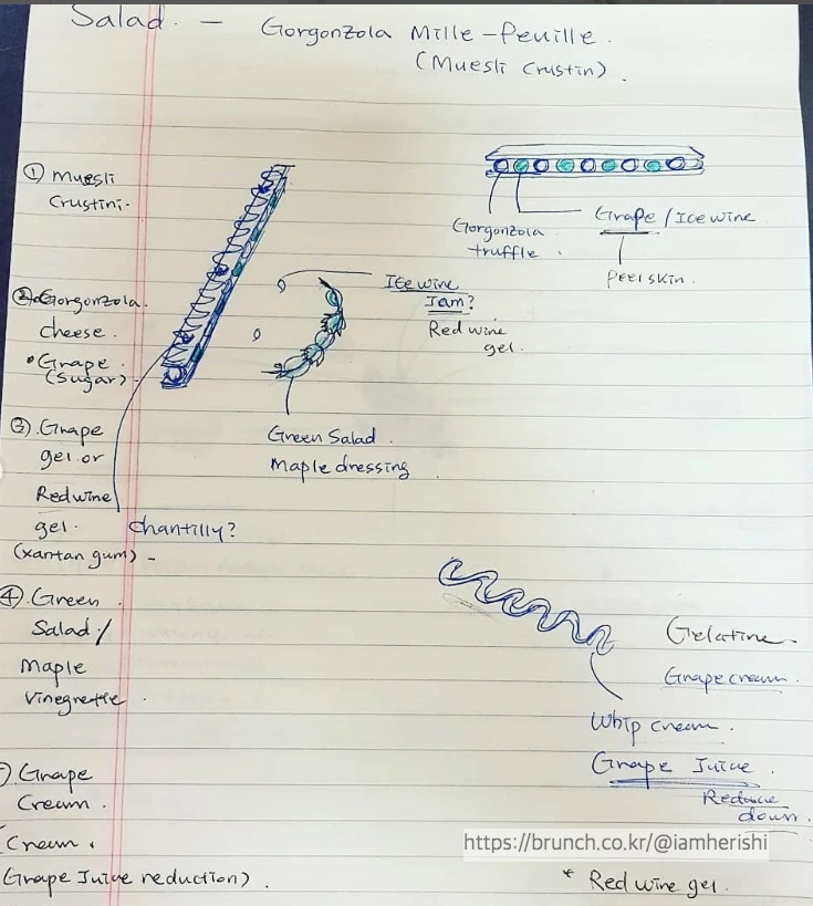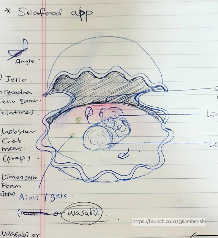 나는 셰프이자 디자이너이기도 하기 때문에 캐나다에 와서 처음 요리를 직업으로 접하면서 요리에서 예술적인 면모를 발견하게 되었고, 그것이 나를 지금까지 요리하게 만들었다. 그래서 짜인 메뉴를 매일 반복해서 만드는 것보다 내가 직접 창작하고 메뉴개발에 참여하는 것을 좋아한다. 그런 나에게 창작의 기회가 주어지니 정말 열과 성을 다해서 연구를 했다.