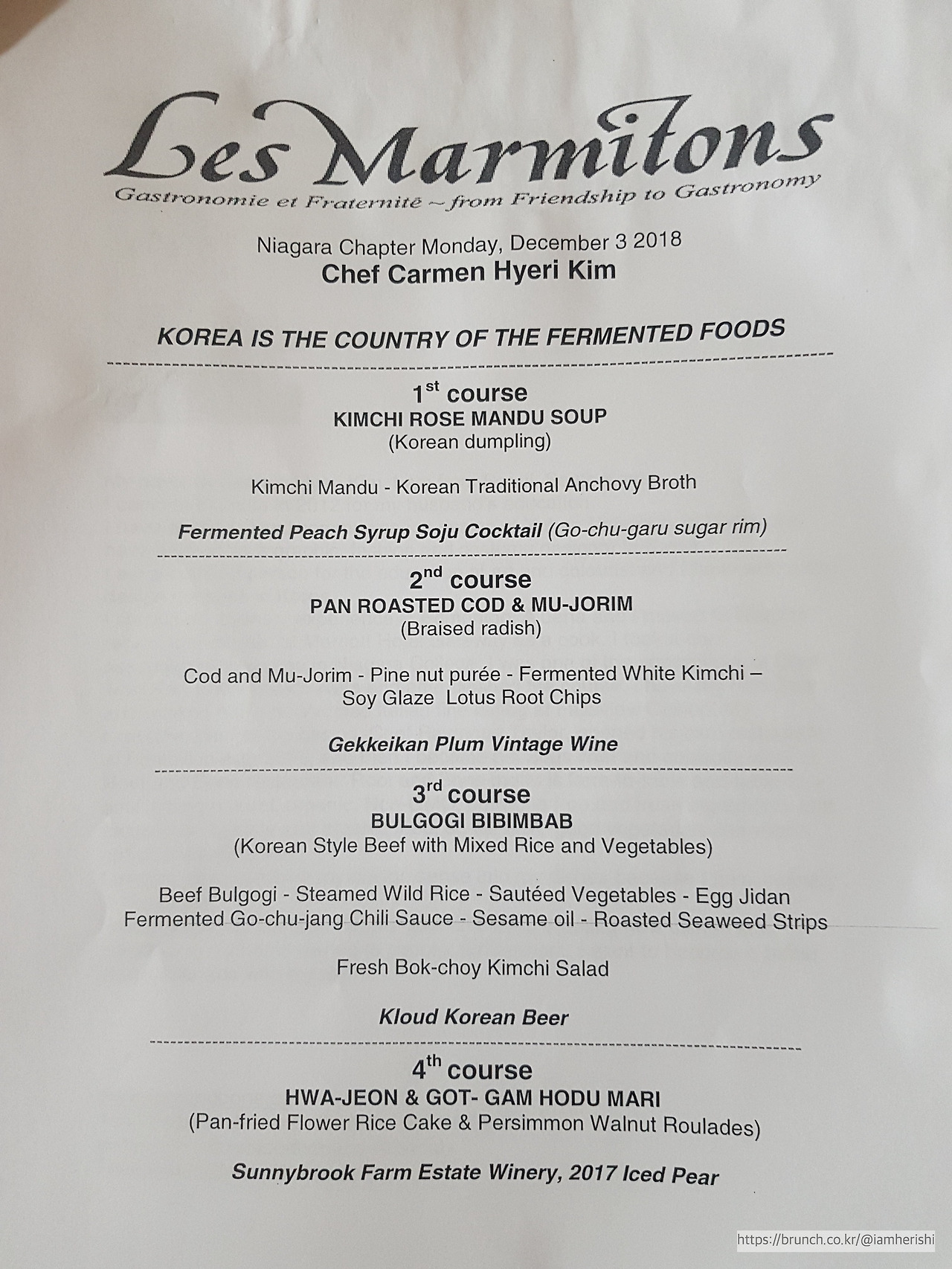 카지노를 떠나 셰프레이의 파인다이닝 수셰프로 오게 되면서, 레스토랑을 오픈하고 점점 안정기에 접어들던 어느 날이었다. 모교인 캐나다 요리학교 교수 셰프님의 부탁으로 레 마미톤스(Les Marmitons)라는 미식가 클럽의 요리 강습을 도와드린 적이 있었다.