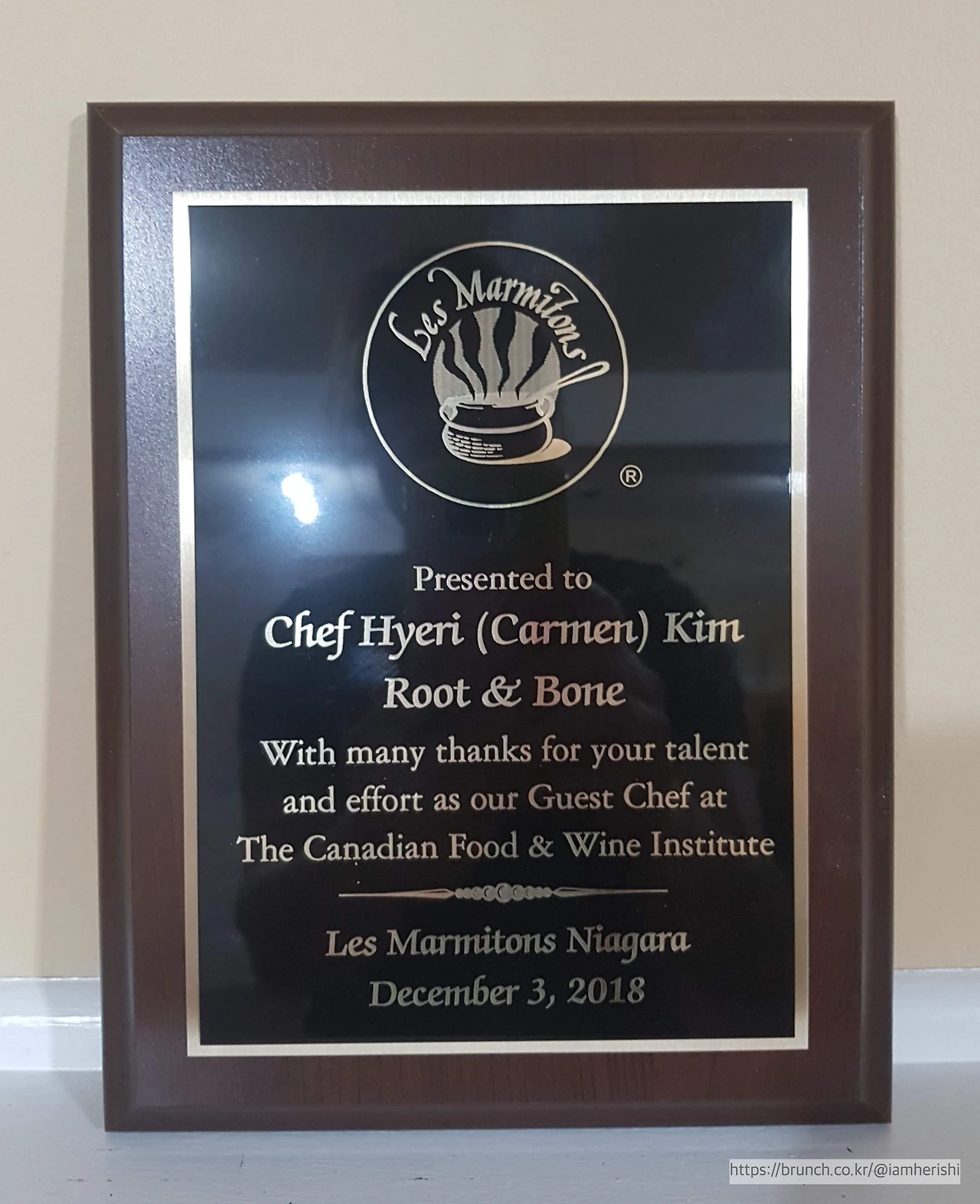 레 마미톤스에서 한국인 최초로 한식 강의를 하며 한국의 맛을 알릴 수 있었던 즐겁고 뜻깊은 경험이었고, 마지막에 레 마미톤스 회장님으로부터 감사패도 전달받았다.