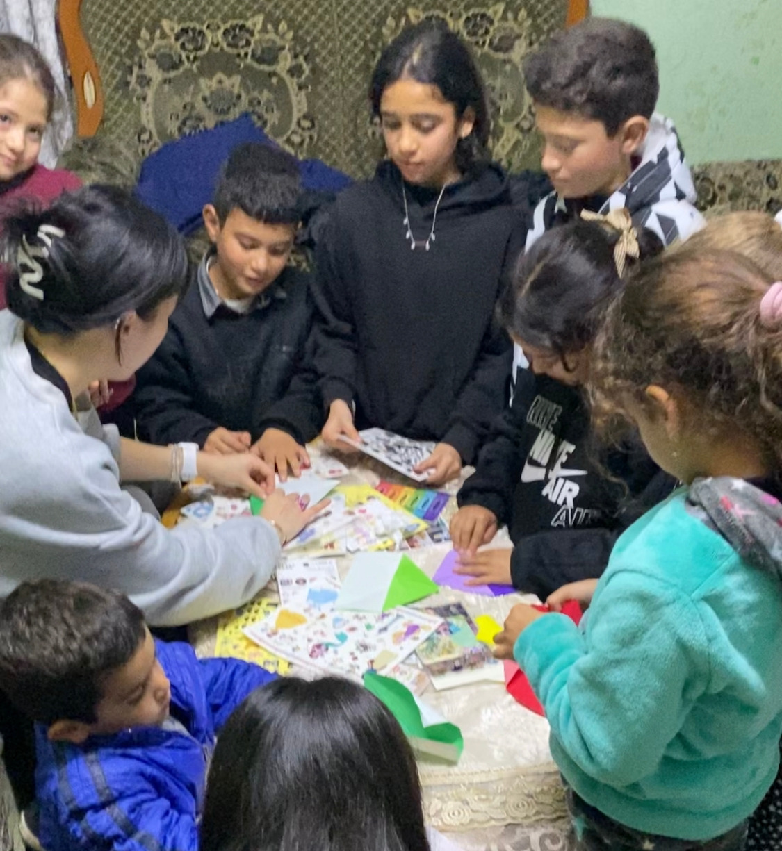 한참을 밖에서 놀고 집에 들어와서 색종이 접기나 스티커 놀이 등 다양한 재미있는 활동을 했다. 팔레스타인에서는 문구류나 아이들이 좋아할만한 것들이 구하기 어려운 환경이었다. 약간의 안타까운 마음과 함께 한국에서 우리가 가져온 선물들을 하나씩 선물하며 함께 정을 쌓아갔다. 가족들과 함께 시간을 보내면서 이 가족을 점점 사랑하게 되었다.