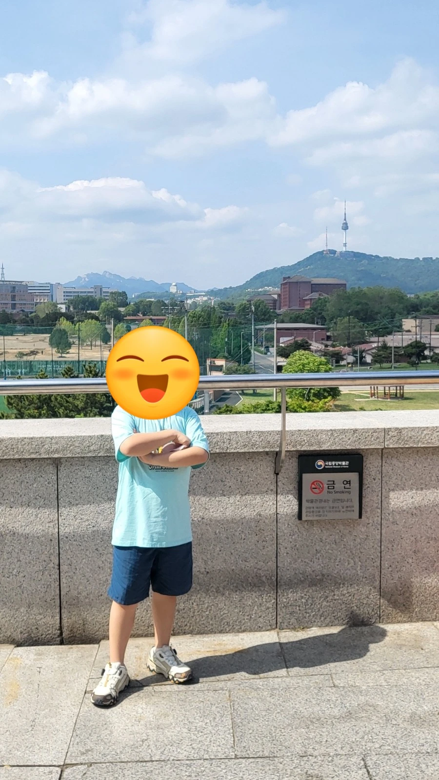 아이는 들떴다. 국립중앙박물관에 도착하자마자, 지인의 아이 이름을 말하며 "ㅇㅇ이는 언제 와?" 물었다. 한국사 유물보다 동생과 만나서 놀 생각이 가득했다. 그리고 공기도, 날씨도 맑은 날의 방문이 처음이었기에 그곳의 풍광에 더더욱 들뜰 수밖에 없었다. 멀리 남산타워가 선명하게 보였다. 연못엔 주황색, 하얀색의 알록달록한 잉어들이 노닐고 카페 뒤편에는 하늘 높이 자란 소나무와 수풀이 무성한 녹지도 있었다. 예전에 왔을 땐 장마철의 한가운데였던 비 오는 날이었기에 박물관 내부만 보여주었다는 기억이 뒤늦게 떠올랐다.