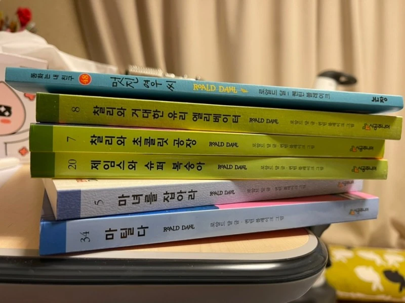 ‘나는 책을 안좋아하는 것 같다’며 주늑들곤 했던 아이가(책은 무조건 읽어야 한다고 생각하기도 하고 엄마 아빠에 비해 많이 읽지 못한다고 생각해서 이런 사실을 부끄러워한다), 자신에게 무려 좋아하는 ‘작가’가 생겼다는 사실에 무척 들떠 보였습니다.
