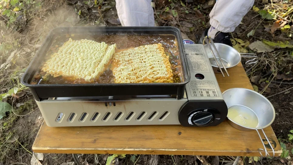 시원한 그늘 아래서 먹는 라면 맛은?