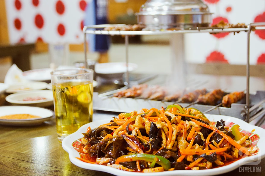 사실 나는 꼬치도 맥주도 덕후는 아니니까 큰 고민 없이 양꼬치에 칭따오를 시켰다. 흔한 조합이지만, 이미 검증된 정석을 택했다. 취기가 올랐다. 기대보다도 쫀득쫀득했고 맛있었다. 양고기를 먹었으니 이번에는 돼지고기. 내친김에 ‘어향육슬’과 칭따오 한 병을 더 주문했다. 잘게 썬 돼지고기에 양파와 호박이 들어가서 느끼함을 잡아줬다.