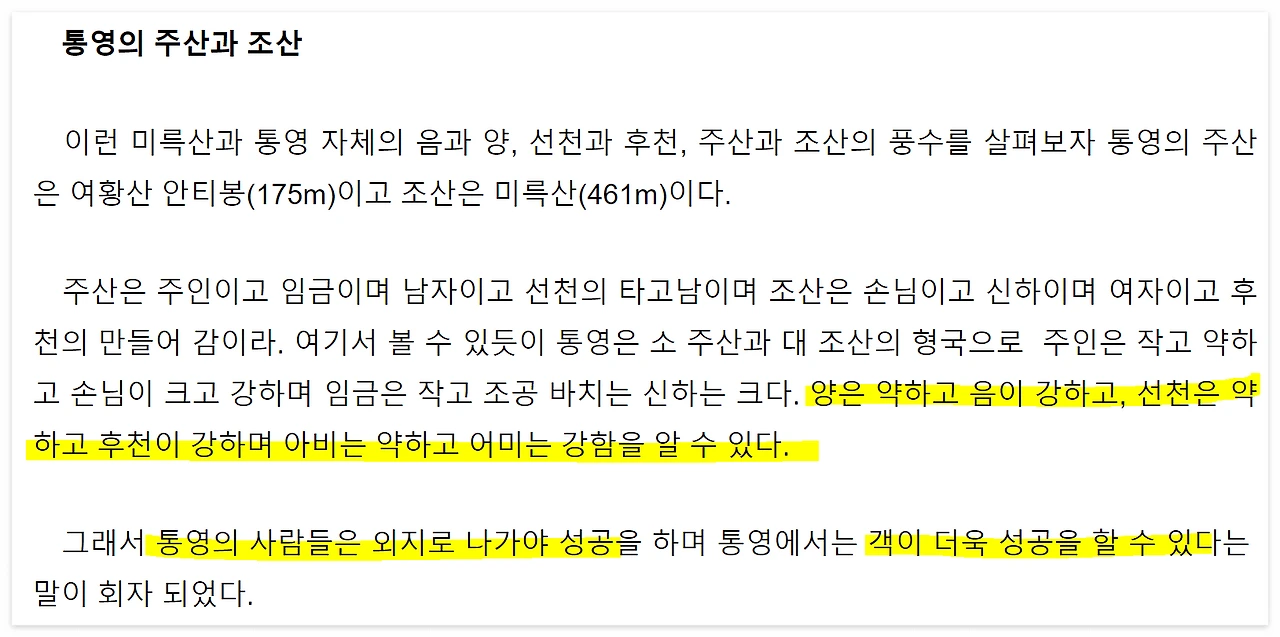 통영 여행 후, 궁금해서 통영 풍수에 대해 검색해 봤다. 무릎을 탁 치는 문구가 눈에 띄었다.