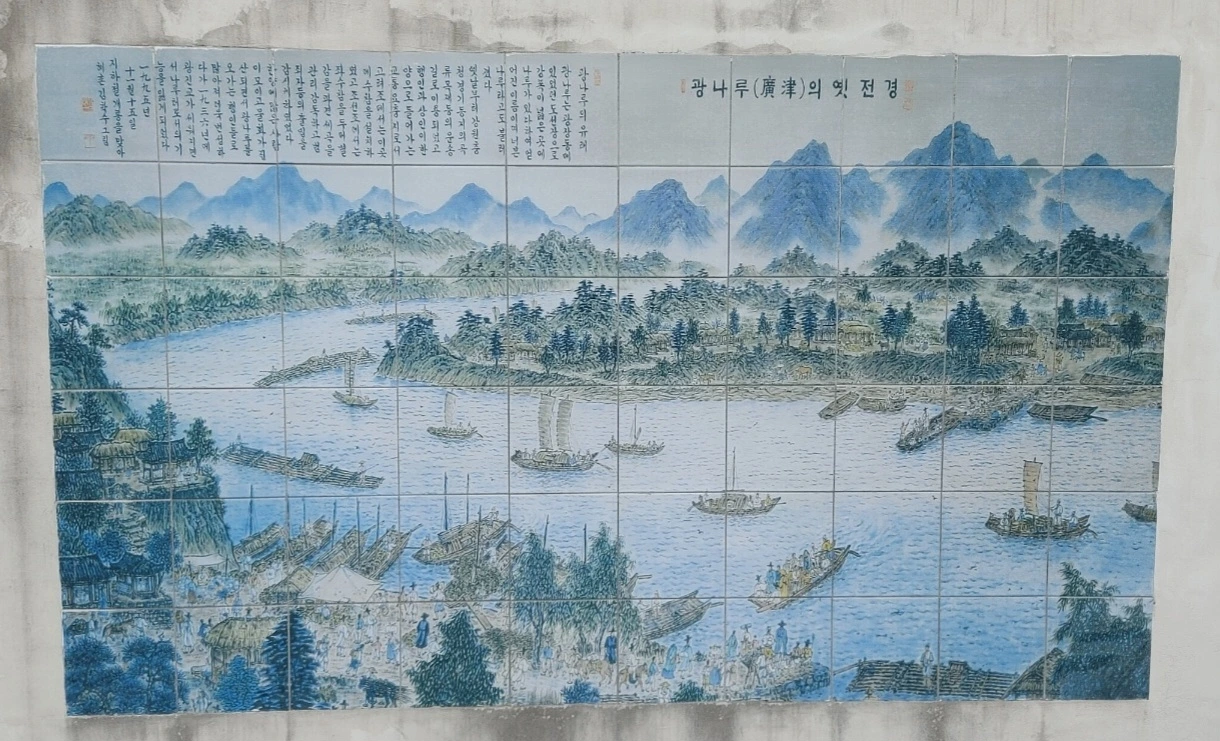 광진교 앞에 옛날 풍경이 걸린 그림이 멋있었다. 핸드폰 밧데리가 다 되어서, 동생에게 한장 찍어달라고 부탁을 했다. 궁시렁거리면서도 찍어주는 화섭씨.