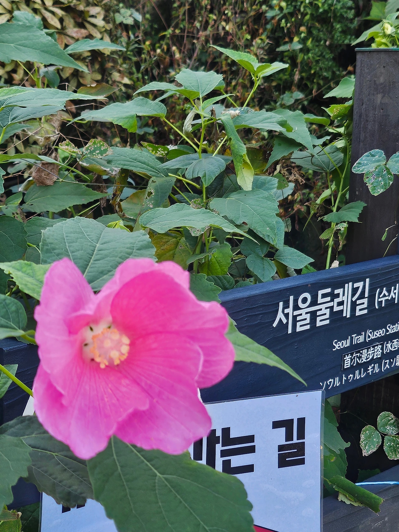 초반엔 맨발걷기로 갔다. 한시간 정도 걸으니 머리가 시원해졌다. 돌길이 나타난 후 신발을 신었다. 숲은 어둡기도 했으나 간간히 전망대가 나타나 저멀리 L타워도 보였다. 사찰에 핀 해당화도 예뻤다.
