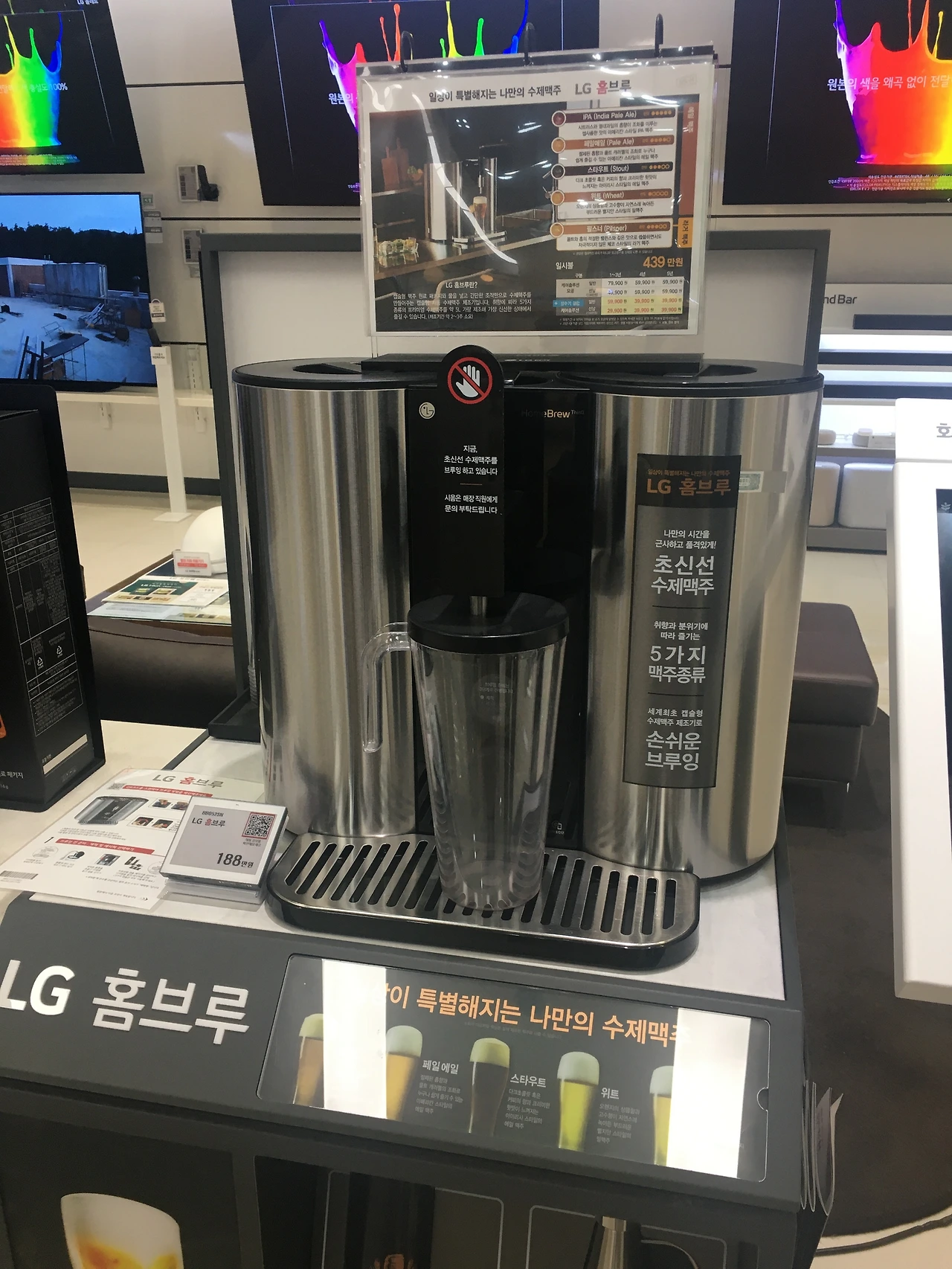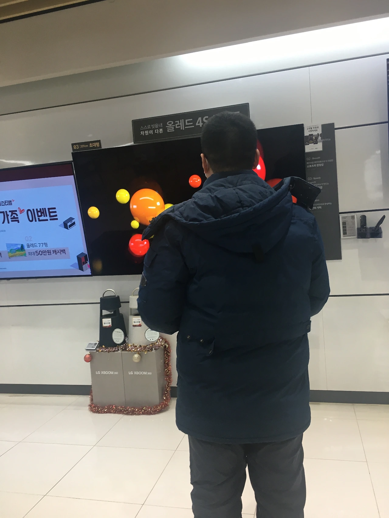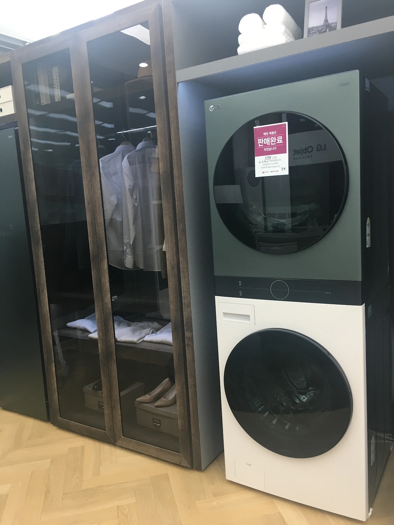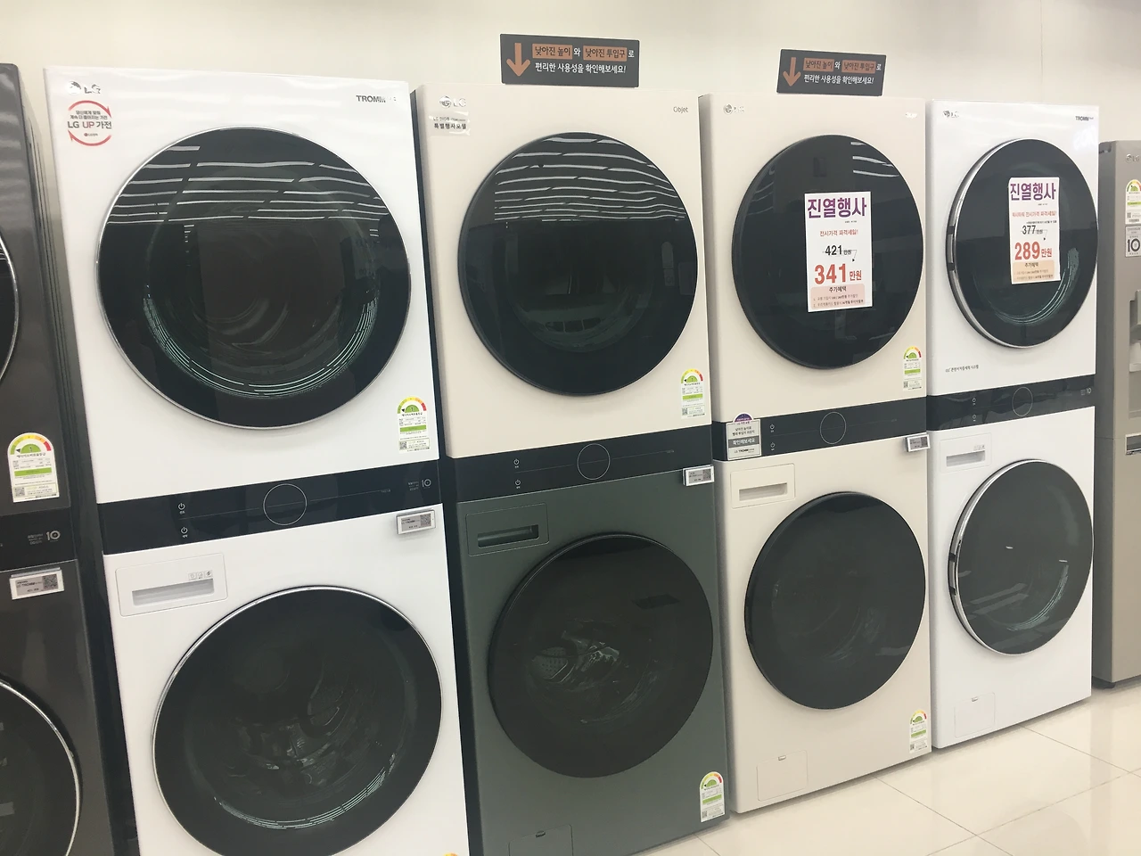 매장이 넓고 쾌적하다. 디자인 예쁜 가전제품들이 눈을 꼬신다. 나는 세탁기건조기 세트가 궁금해 2층으로 가자했다. 디자인 예쁜게 그냥 백색 제품보다 비싸다. 1층으로 내려와 동생이 좋아하는 tv코너로 갔다. 대각선 길이가 209cm 되는 tv를 찾는 동생. 야~ 감탄하며 본다.