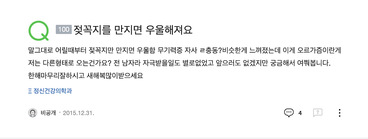 하지만 모든 이들에게 해당하는 것 같진 않습니다. 젖꼭지를 자신이나 남이 만지면 우울함을 느끼는 사람들이 있기 때문입니다. 우리나라뿐만 아니라 전 세계에서도 발견되는 현상인데