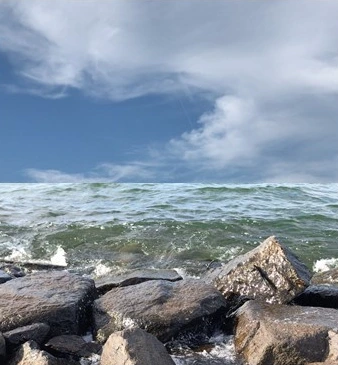 호수 저편에서 불어오는 바람과 파도가 돌에 부서지는 소리를 느끼며 눈을 감았습니다