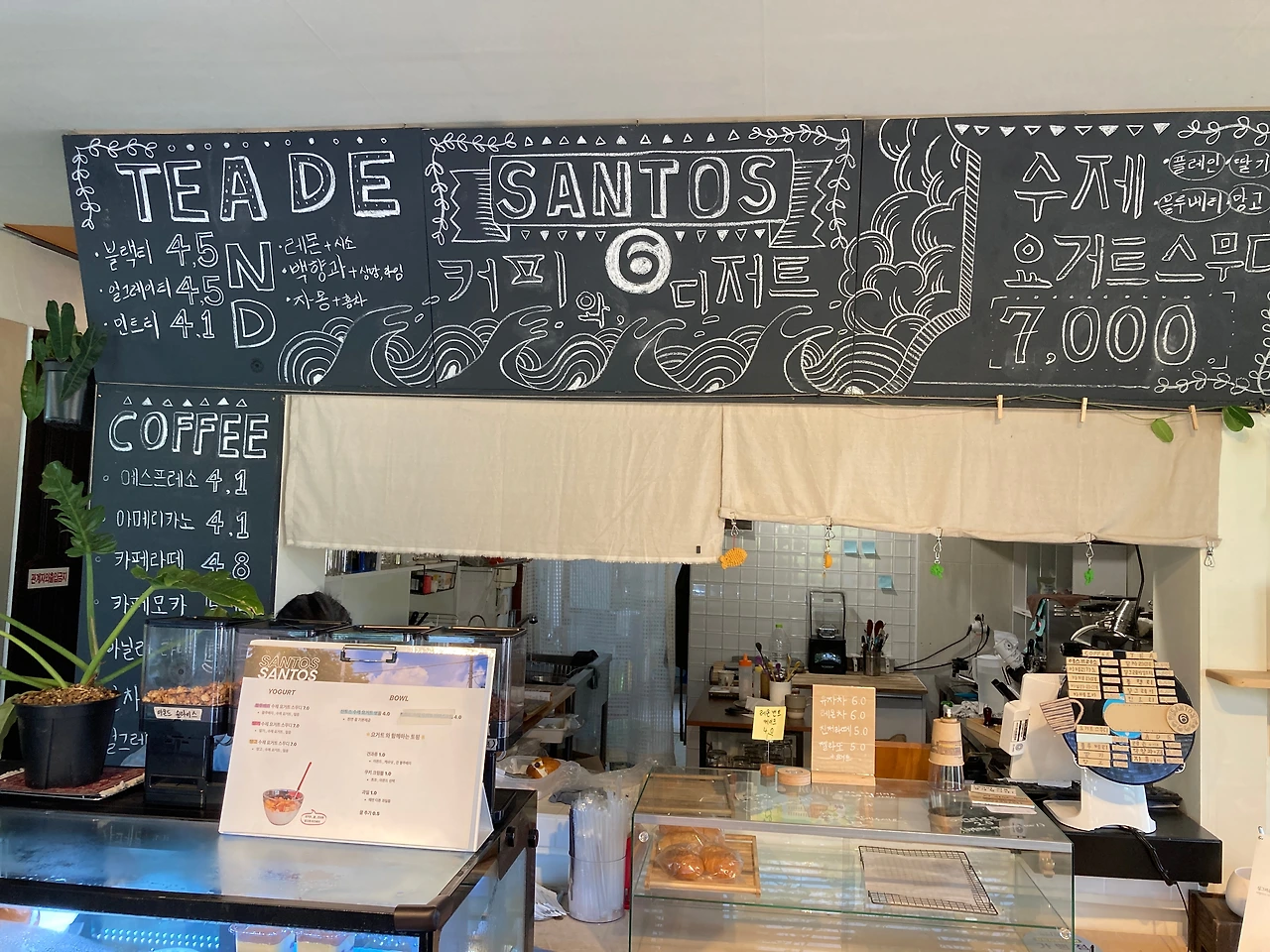 두 시간 삼십 분을 꾹 참고 인근 카페 중 유일하게 아침 일찍 문을 여는 “카페 산토스”로 왔다.