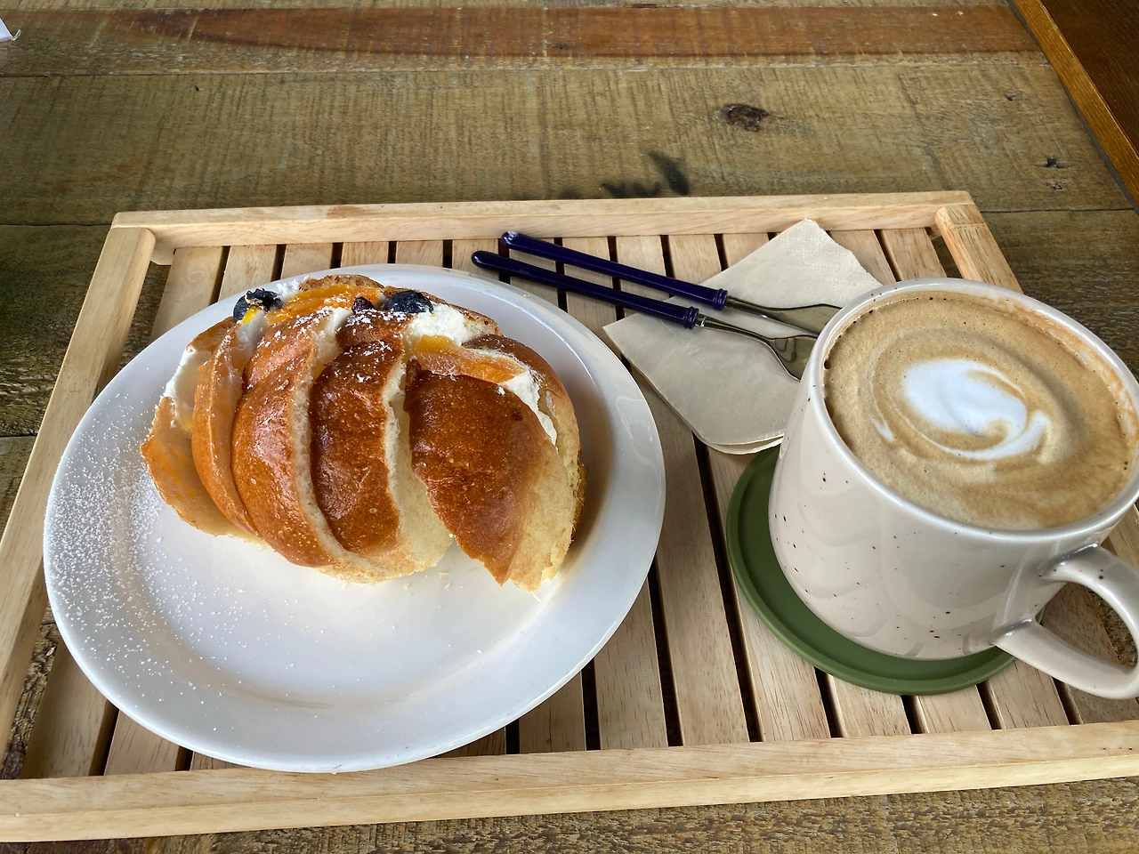 아침에 두 시간 삼십 분을 걷고 전라남도에서 먹는 아침빵과 커피 한잔!! 무엇이 더 필요하겠는가