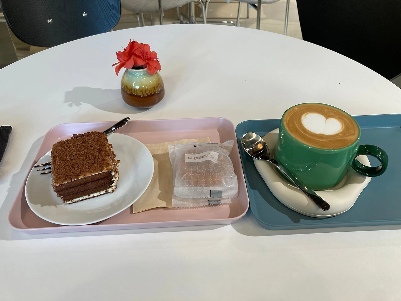 기쁜 마음에 라테 한잔과 케이크 한 조각시켰다.