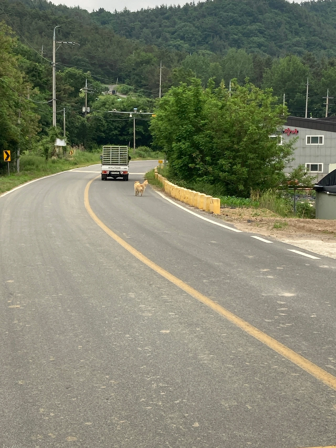 백 미터 정도를 내 앞에서 짖어대면서 내 길을 막아서는 것이다.
