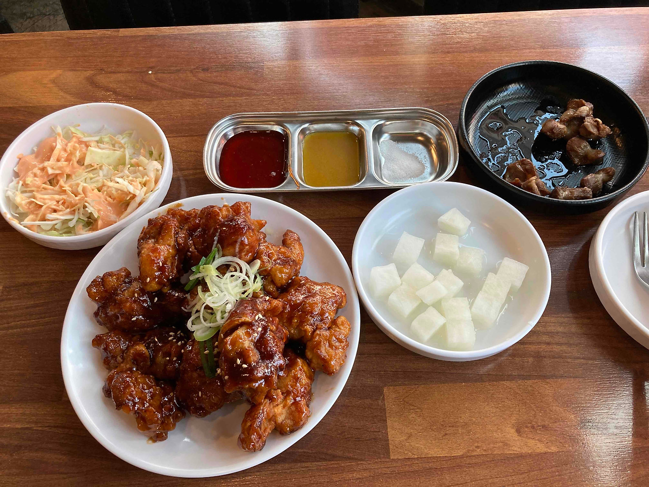 힘이 들어서 그런가... 반마리조차 다 못 먹고 6조각을 남겨 싸왔다.