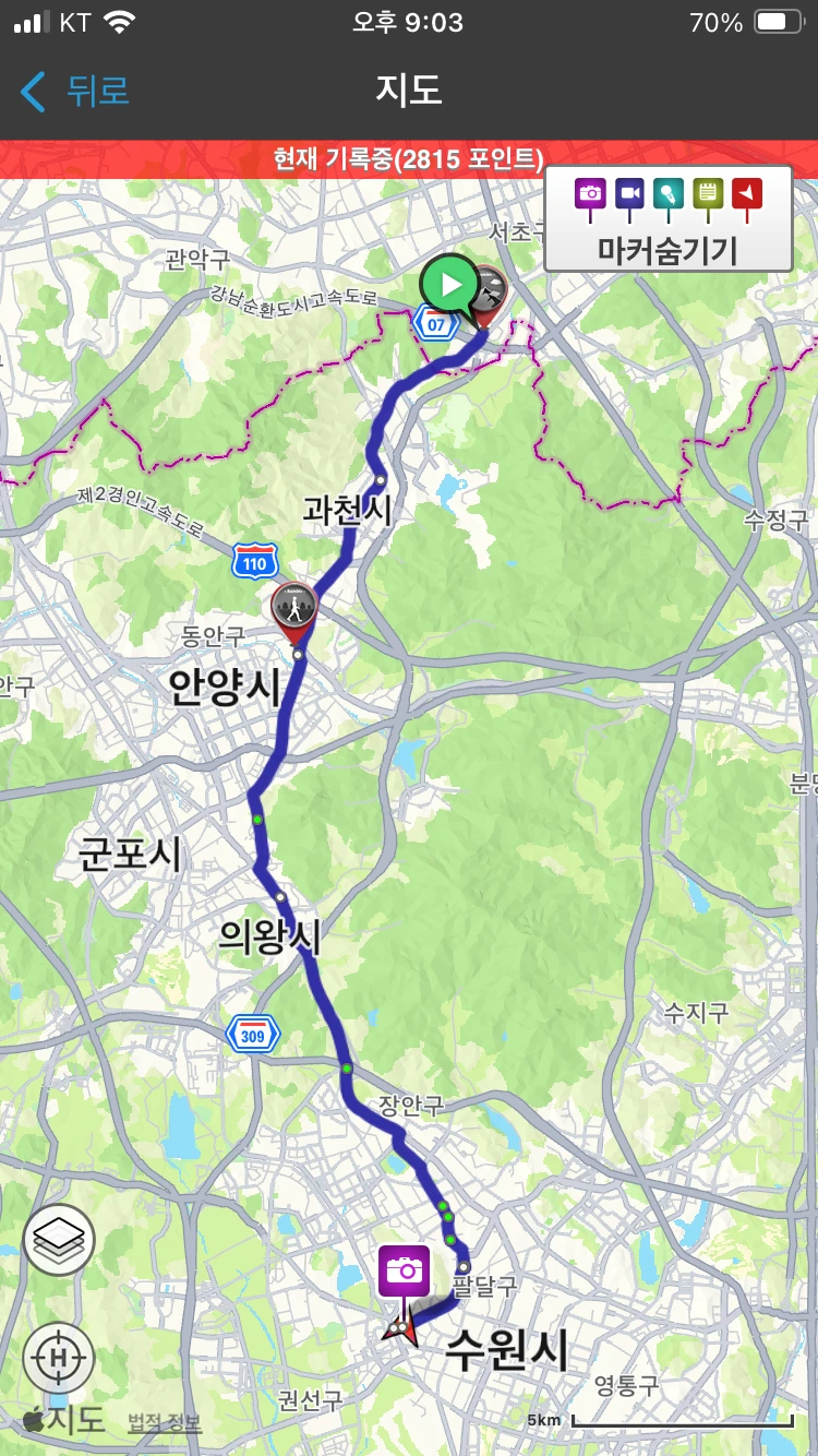 이동경로: 서울시 서초구 우면동 - 경기도 수원시 수원역(아이비 모텔)