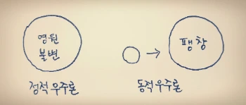 동적 우주론은 또 2가지로 나뉩니다. 정상 우주론과 팽창 우주론입니다.