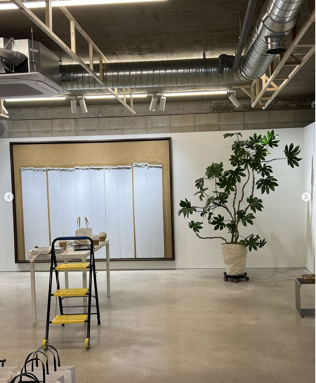 설치일정에 맞춰 들어간 팔손이. 조명이 정해지기도 전, 다른 플레이어들의 작품이 모두 설치되기 전, 팔손이는 실루엣과 풍채를 담당하며 먼저 자리했다. 또 전시장에서 마주하는 팔손이는 또 달랐다. 수형을 살려주면 조명에 비치는 그림자가 바뀌고.
